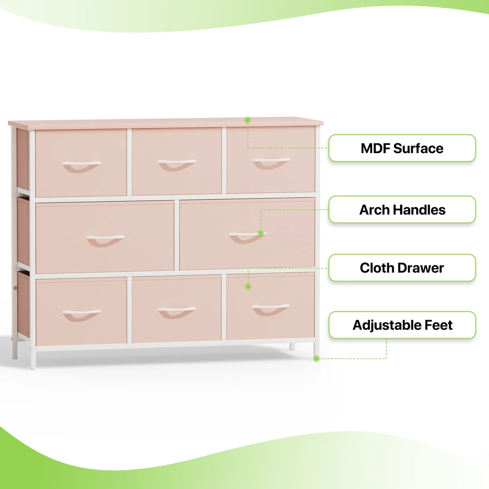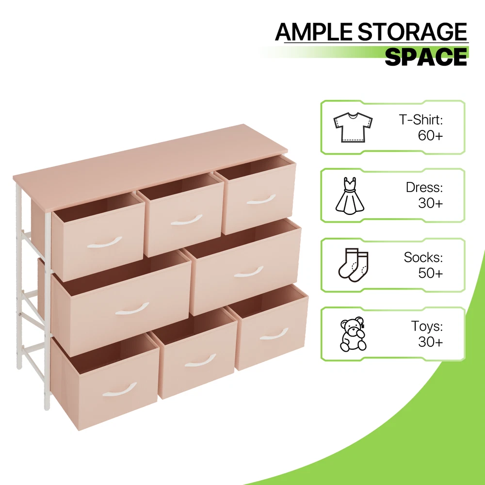 Magshion Home About Us Feedback Add to Favourites New Arrivals Ending Soon Contact Us Barstools LED Lighting home décor patio pet supply shelf Others 10 Double Drawers Dresser Fabric Chest of Drawers Clothing Storage Organizer Bin Item Description This 10-drawers dresser comes with 2 underwear drawers, 2 partition drawers, and 6 large drawers. It can be classified to store your clothes, accessories, underwear, and more, helping you quickly find the items you need. It is a great assistant for storing your home items. Sturdy metal frame with an X-shaped support rod at the back ensures the stability of the drawer cabinet, making it an excellent choice for increasing storage space in small spaces such as bedrooms, living rooms, closets, hallways, etc. Brand : Magshion Dresser Type : Vertical Dresser Color : Pink Frame Material : Iron Top Material : MDF Overall Size : (L)39.5" (W)12.0" (H)43.5" Number of Drawers : 10 Tipover Restraint Device : No Assembly Required : Yes Recommended Rooms : Bedroom; Living Room; Office; Entryway Spacious 10-Drawer Design - This dresser offers ample storage for daily essentials, with divided drawers for small items like ties and underwear, and larger drawers for clothes, books, and more. The MDF tabletops provide space for lamps, photo frames, and decor. Well-built Construction - This tall dresser features a solid metal frame with a unique X-shaped rod design , hard MDF top, and breathable non-woven fabric drawer. It also includes a child-safe design with anti-tilt features for added safety and peace of mind. Convenient Design - Easy pull handles help open and close the drawers smoothly; 4 adjustable feet can protect your floor from scratches. Stylish and Versatile - Available in four colors to complement any home decor, this chest of drawers can enhance various spaces such as bedrooms, living rooms, closets, dorms, children's rooms, offices, nurseries, and hallways. It functions not only as a storage dresser but also as a TV stand or media console. Simple Assembly - All parts and accessories are included in the packaging for easy installation of the fabric drawer dresser within 30 minutes. Securing the dresser to the wall is recommended. For any questions, feel free to contact us for prompt assistance. Overall dimensions: 39.5" L x 12" W x 43.5" H. About Us Payment Shipping Returns Feedback Contact Us Magshion Inc. Decor Essentials We are in the business of enriching your home experience through creative, stylish and yet affordable décor. Magshion is an online platform offering a broad selection of traditional and contemporary merchandise including furniture, Patio Goods and home improvement products, expertly crafted and designed to last. We are confident that our products will capture your imagination, and help you turn your inspiration into action without hurting your wallet. The growing willingness of customers to do their shopping online encouraged us to set up our first online store on eBay in November, 2005. Since then we have established a strong presence on Amazon, as well as our own e-store. We make sure to keep up with the trends in interior design and dedicate our efforts to bringing you the latest styles. Having strong relationships with factories abroad allows us to pass the savings along to you. Our online platform offers a wide range of products so you can pick the ones that express your personality and fit your home and budget. Magshion brings you outstanding customer service and makes your decoration projects easy, affordable and fun. We only accept PayPal for the Payment Terms. We ship all our items either via UPS/FEDEX or USPS. If there is no specific request prior to purchasing, we will ship either method. General receipt time is 2~10 business days from payment receipt date. Free shipping only applies to the lower 48 States of the U.S. (Exclude HI/AK/PR/PO BOX) Double check shipping address. We are not responsible for incorrect or undeliverable Addresses. We are not responsible for any changes to address after item has been shipped. Store returning policy, you have to return the item within 30 days after receiving. After receiving the item back, we are going to refund a full purchased payment back to your account. For returning, you will return the item with your own shipping cost. After 30 days, store will not accept the return. Before returning, please make sure the items to be clean, no dirty, not damaged at all, and the color is unchanged because of using. We will not accept the item if it is already used and worn out cover with the color changed. After we receive the items in a good original condition, we will refund you a full purchased price back to your payment account. We are so sorry that we are unable to accept your return if you already keep our product for more than 30 days, or the product is damaged because it is already used. Thank you. About Us Magshion Inc. Decor Essentials We are in the business of enriching your home experience through creative, stylish and yet affordable décor. Magshion is an online platform offering a broad selection of traditional and contemporary merchandise including furniture, Patio Goods and home improvement products, expertly crafted and designed to last. We are confident that our products will capture your imagination, and help you turn your inspiration into action without hurting your wallet. The growing willingness of customers to do their shopping online encouraged us to set up our first online store on eBay in November, 2005. Since then we have established a strong presence on Amazon, as well as our own e-store. We make sure to keep up with the trends in interior design and dedicate our efforts to bringing you the latest styles. Having strong relationships with factories abroad allows us to pass the savings along to you. Our online platform offers a wide range of products so you can pick the ones that express your personality and fit your home and budget. Magshion brings you outstanding c