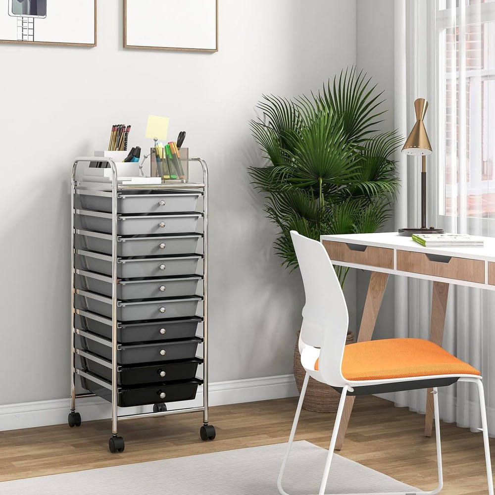 10 Drawers Rolling Storage Cart, Mobile Utility Cart, Sundries Storage Cart w...