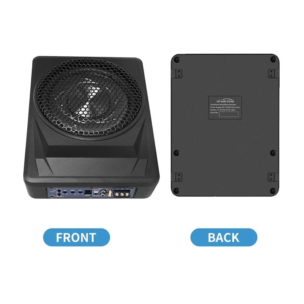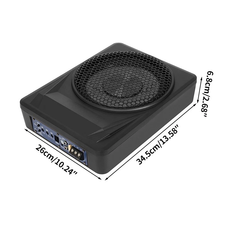 Product features: *2200W bass, the 68mm thin subwoofer is directly installed under the passenger seat *10 inch high-power active subwoofer, excellent low frequency performance, pure low music output, surging sound effect * ALUMINUM ALLOY SHELL ALUMINUM ALLOYSHELL Not afraid of product damage *High-strength stainless steel horn protective net cover, black paint, not easy to rust *1.4mm thick mesh material, strong pressure resistance *Frequent maintenance and maintenance will enable the speaker to obtain longer battery life. Product information: Speaker size: 10 inches Rated power: 2200W Product size: as picture show feature:slight fever dual voice coil Package includes: 1*10 inch car audio 1*car cable
