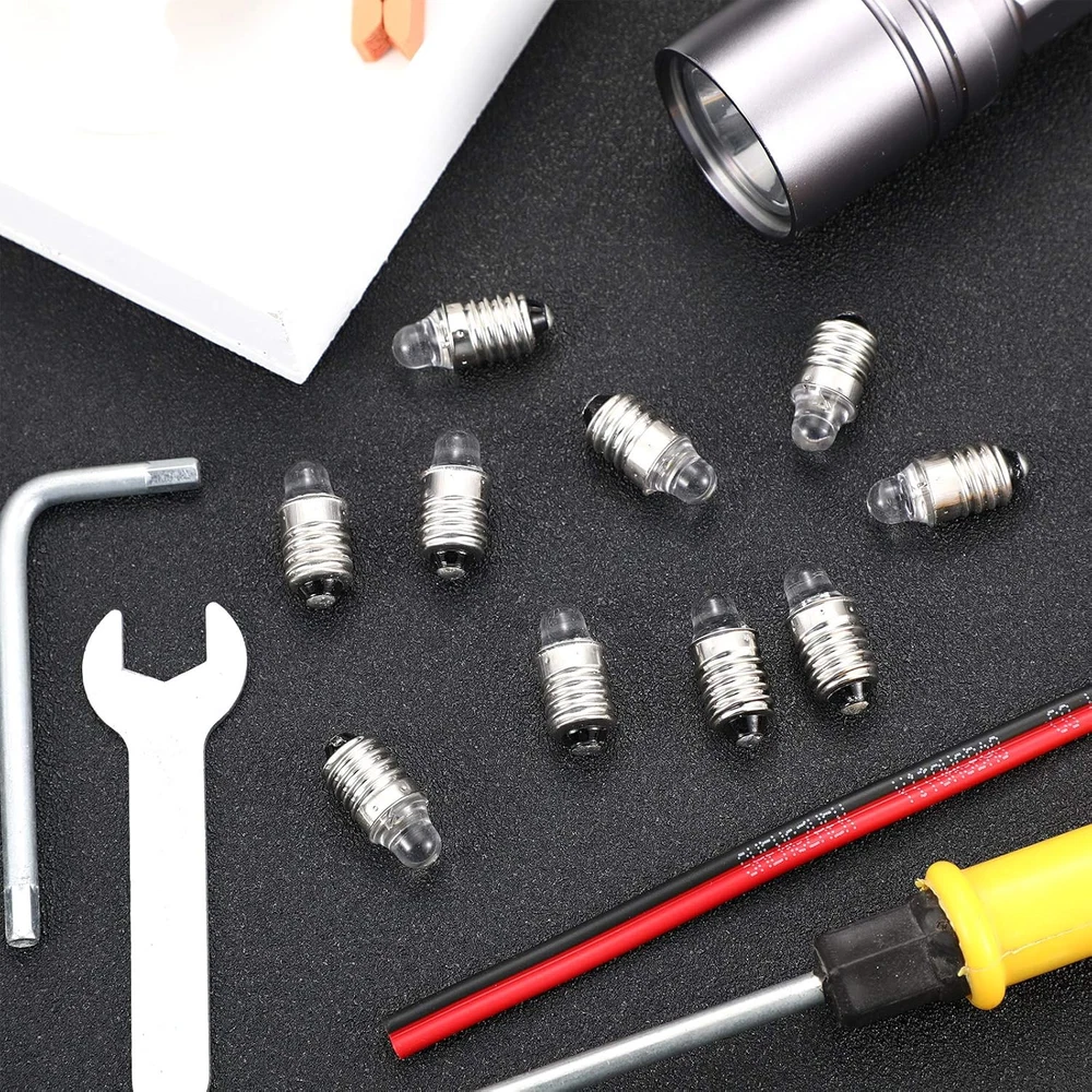 10 Pieces E10 LED Bulbs 3 Volt Miniature Flashlight Bulbs E10 Replacement Bulbs [[IMAGE]] Hello, We Do Sell Mobiles, Computers Tablets & Network Accessories! Features Quality material: the quality glass and metal material of these 3 volt 0.03 watt miniature LED flashlight bulbs allow them to work for a long time without risk of easy damage or burn, to be durable and stable Easy to replace: this LED bulb is easy to install and remove, you can easily replace the damaged bulb on the flashlight without spending a lot of time, this flashlight torch lamp will be a proper way to refresh your flashlight Warm tips: the replacement bulb can be applied in a flashlight or mini bulb E10 holder, 2 batteries in series (D, C, AA, AAA) to operate, the quality glass and metal material allow it to work for a long time, each package is strictly tested before delivery Size details: miniature LED flashlight bulb is about 2.1 cm/ 0.83 inches in length, small and easy to store, won't take too much space in your home; Please keep it away from little kids to avoid swallowing risk Package includes: you will get 10 pieces miniature LED flashlight bulbs, enough quantity for your daily use and replacement; Please ensure the size before purchasing in case of unfit situation Product Description Please connect the negative and positive correctly. The bottom is positive, and the side is negative. Durable material makes it have long service time. And you can use it for long time if the batteries are sufficient. The light bulb is made of quality glass and metal wire. So it is not easy to break during using period. Note: Please allow slight size errors due to manual measurement. The colors may exist slight difference due to different screens, please understand. Choking risk may exist, please keep them away from child to avoid accidental swallowing Light Source Type led Number of Items 1 Power Source Battery Powered Control Method App Batteries Included? No Controller Type Push Button Unit Count 10.0 Count Batteries Required? No Light Source Wattage 3 Watts Material Glass, Metal Specific Uses For Product Lamp Item Package Quantity 4 Light Type LED Bulb Base E10 Country of Origin China Light Color Cool White Item Weight 0.634 ounces Connectivity Technology Normal bulb Color Rendering Index 80 Part Number -127209 Color Cool White Wattage 3 Watts Package Dimensions 4.29 x 2.68 x 0.51 inches Shape Arbitrary(A) Voltage 3 Volts (DC) Finish types Metal 2.68 inches x 4.29 inches x 0.51 inches. Weight: 0.634 oz Payment We accept all payments via Ebay using Credit Cards , PAYPAL , Apple Pay and many others Shipping We are always working hard to ensure your package arrives as soon as possible. Please understand that some factors like weather, high postal traffic, and the performance of shipping companies are outside of our control. Delivery & Return Policy We offer a 30-Day Return Policy on items in which you are not completely satisfied with. You have the option of a full-refund or an exchange of the item. No returns are available on items shipped outside of the USA.