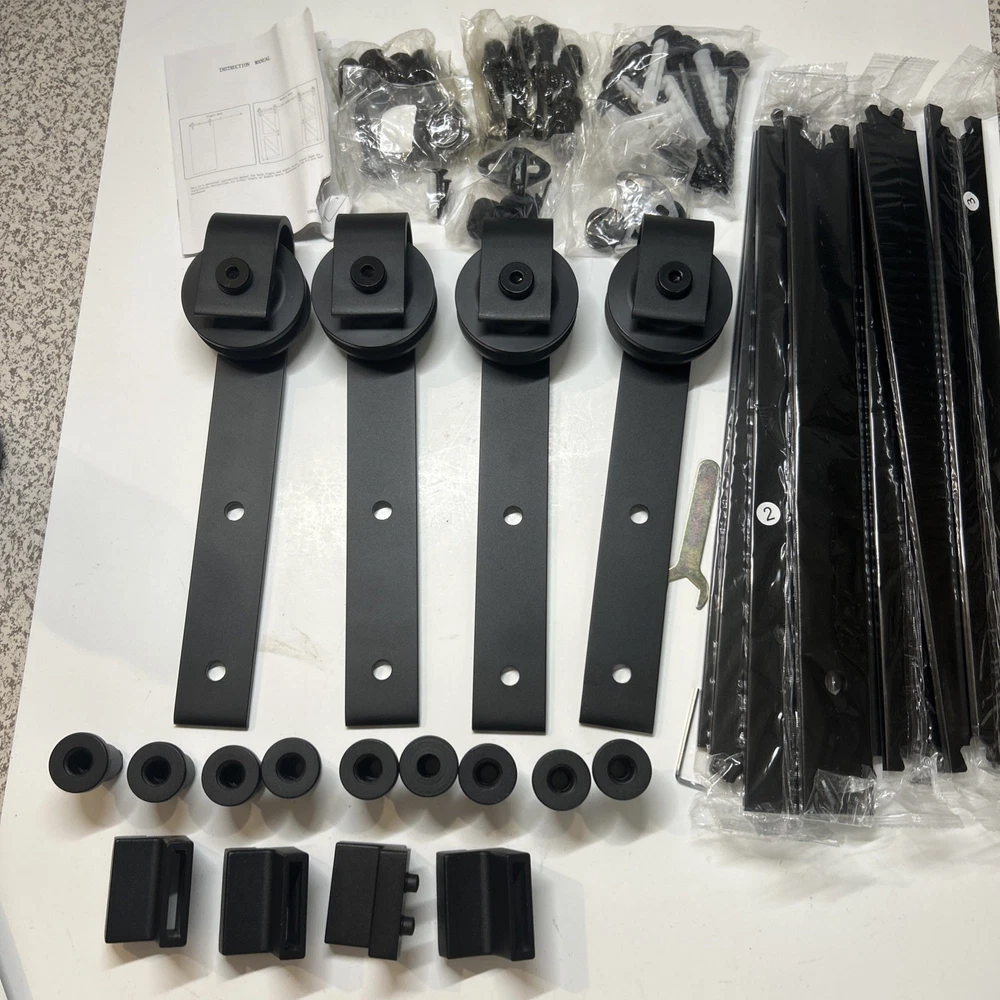 Open box New item! 【New Whole Track Splicing】Use the rail spacer to connect the whole rail by installation tool and wrench. Fix rails in advance to position drill holes, avoid track unevenness and breakage caused by segmented installation. Bringing you a more easy and safe installation experience. 【Heavy duty】Upgraded materials of tracks make each section connected firm and tight, flat and smooth roll after installation, weight capacity of 350lbs. Package Includes: (8)1.25ft Rail, (4)Rollers, (2)T Shape Floor Guide, (9)Rail Spacer, (4)Door Stoppers, (4)Anti Jumpers, (1)Screw kit & Tool. 【Easy to install】Drilled hole can be directly positioned without measuring. Detailed instructions and Video show each installation step with words and pictures. Professional installation guidance by timely customer service. 【Premium materials】Aluminum, waterproof, rust-proof and durable. No need to worry about rusting caused by paint peeling after bumping.
