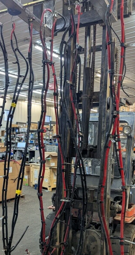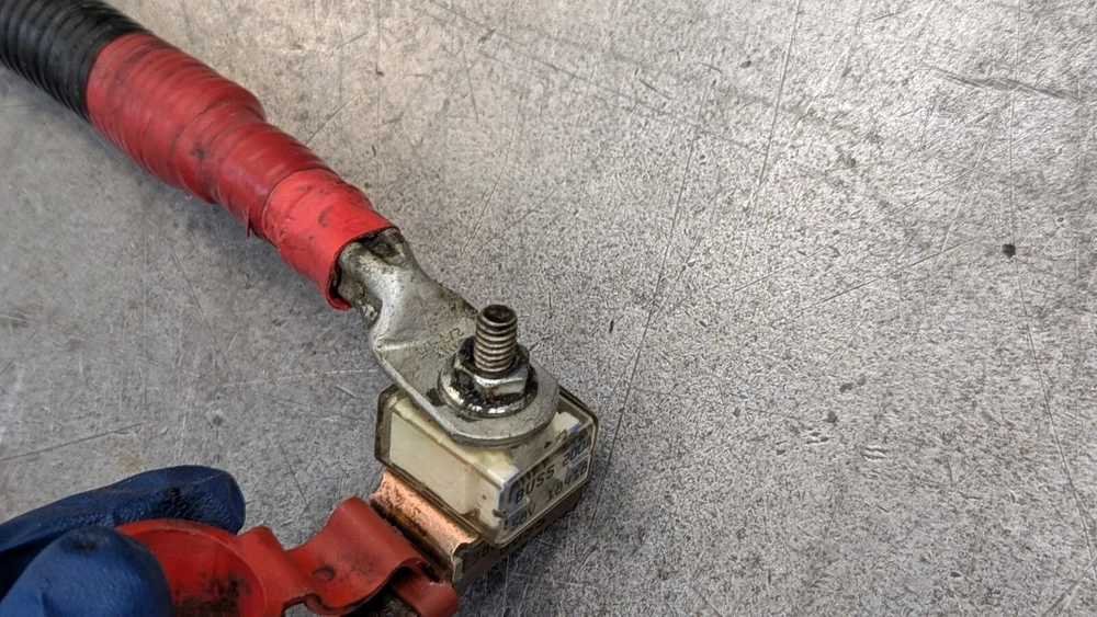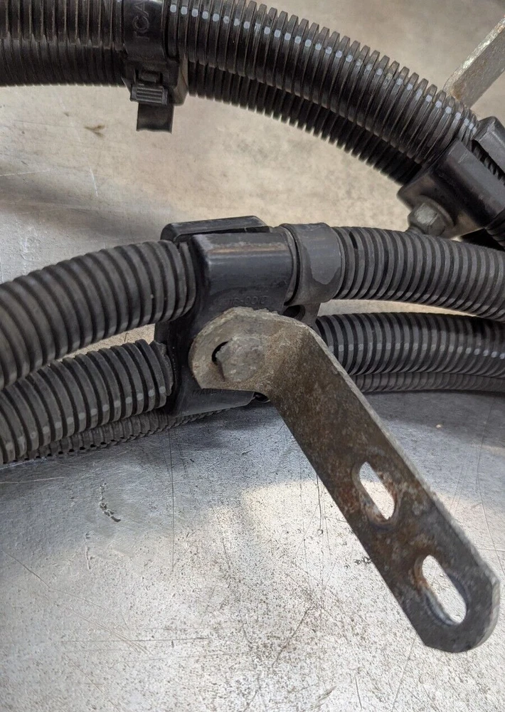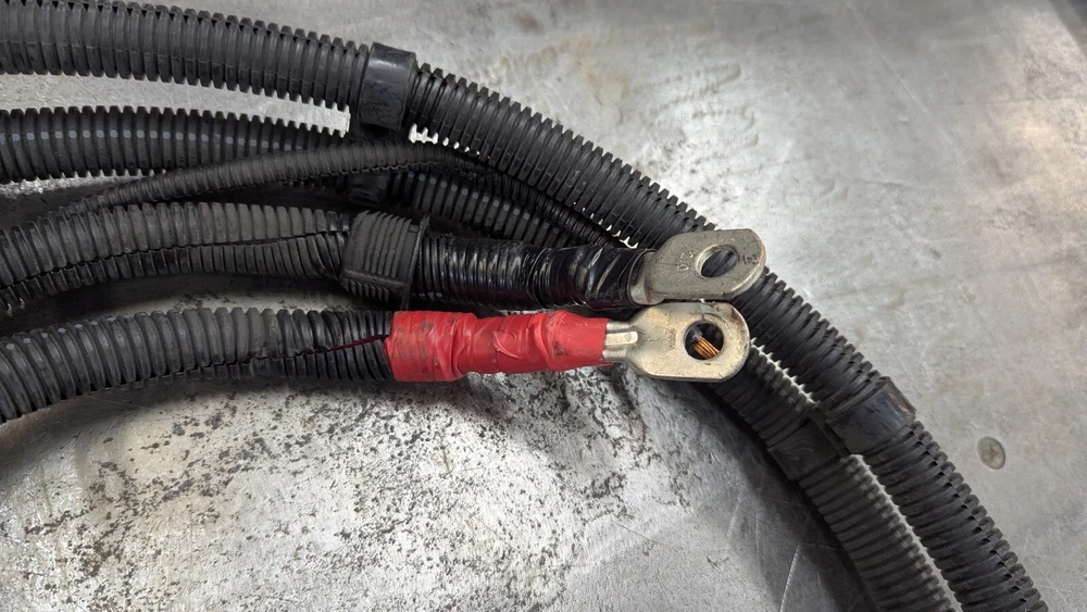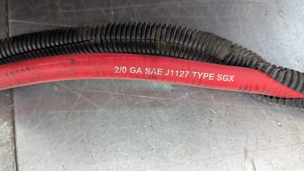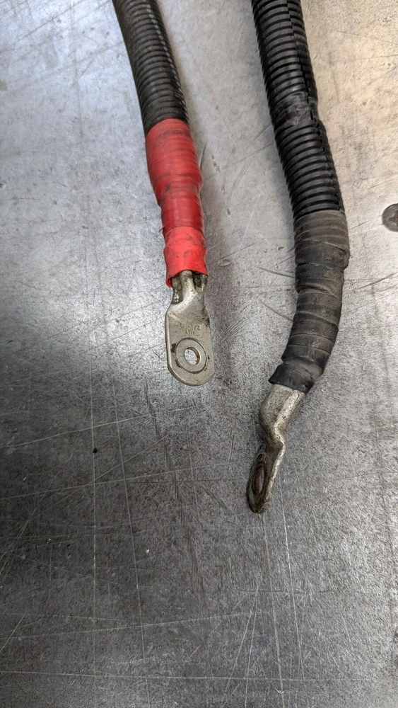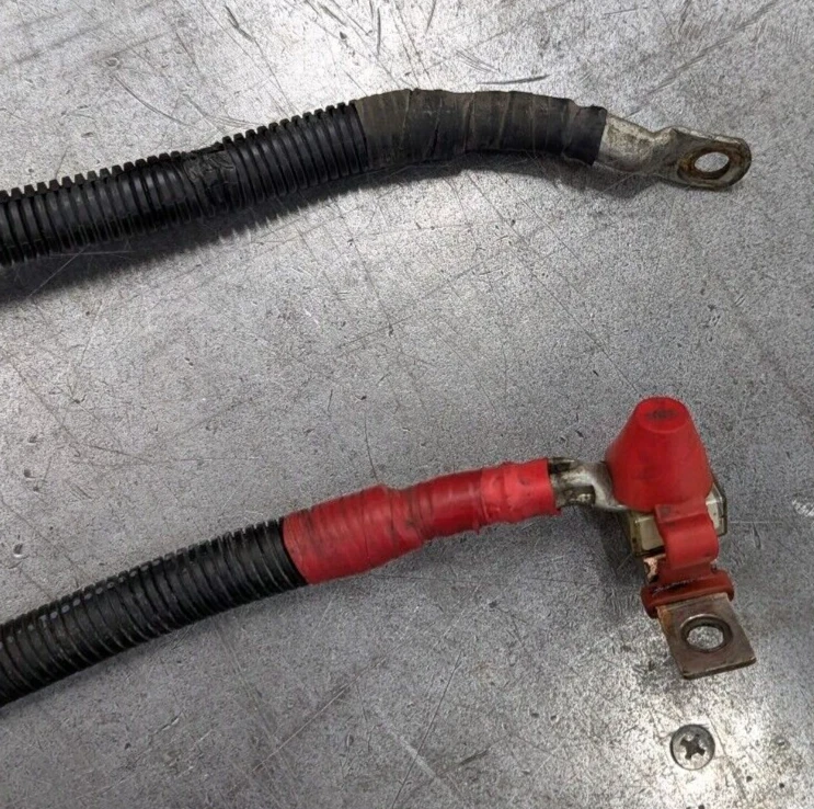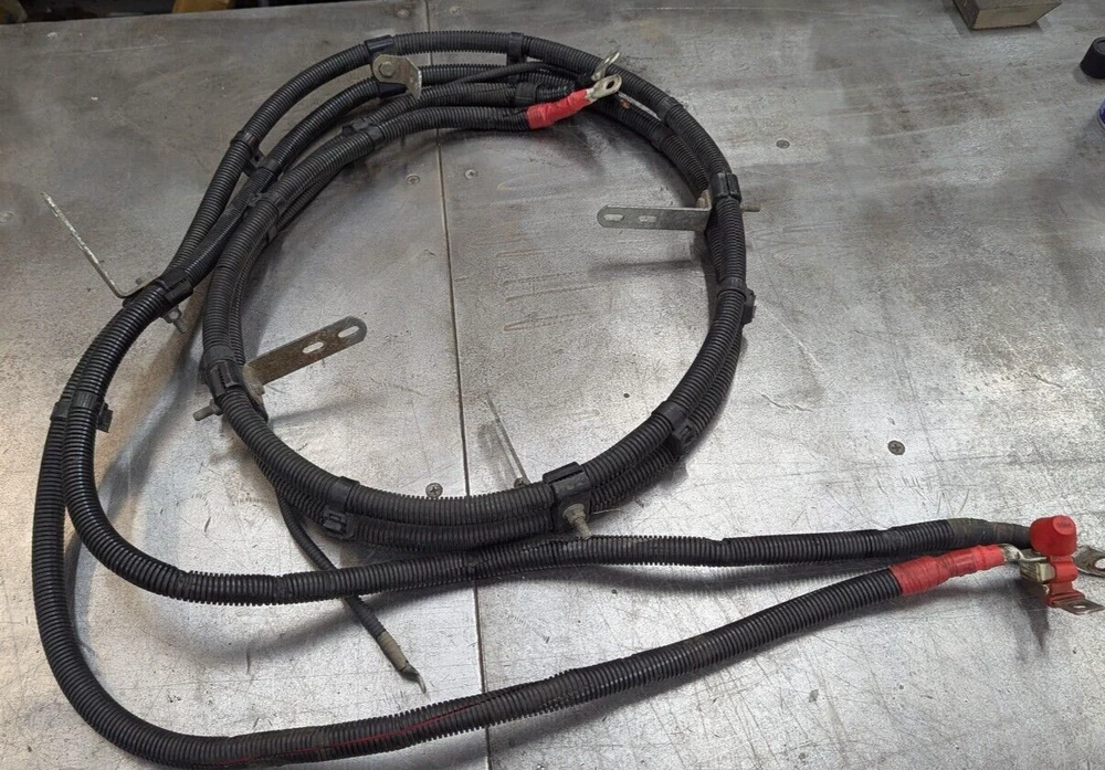 Reasonably priced Heavy Duty Battery Cable set typically used for power inverters. These are good used inspected power supply wire sets. Also works for your Welder R/V Solar Power Backup Generator or just plain old heavy duty battery cables. Includes 10 foot eye to eye heavy duty both red & black 2/0 Gauge SAE J1127 cables. 1- 300 amp Buss battery terminal 1- 200 amp Power supply fuse. Heavy Duty Split loom protective covering Guaranteed to perform like new cable. I have several of these and they are basically all the same cable and ends. The number and placement of tie downs and brackets is what changes as they came off different configurations of trucks. Easily modified to your application. Fast free shipping is included