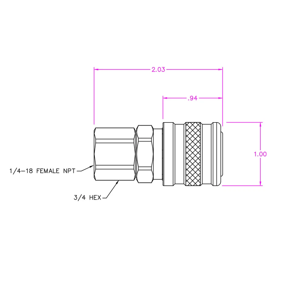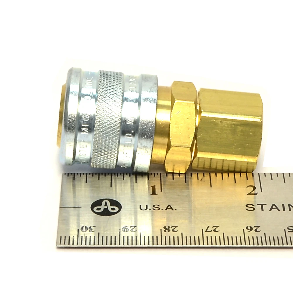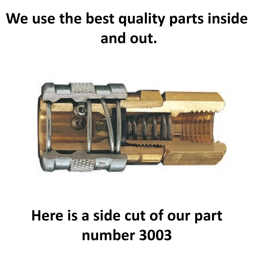Foster Manufacturing Co. Series: 3 Part Numbers: 3003 Interchange: Industrial, M, I/M, MIL Coupler Body: 1/4" Body Coupler Thread: 1/4" Female NPT, FPT Material: Brass/ Steel Sleeve Quantity: 10pc Working Pressure: 300psi