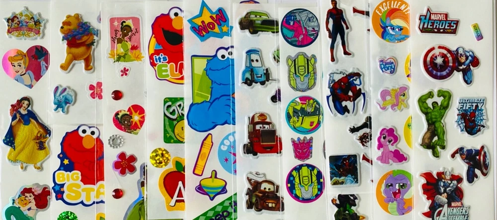 10 Full Sticker Sheets,MIXED CARTOON THEMES 4 BOYS & GIRLS ALL AGES KIDS TEENS