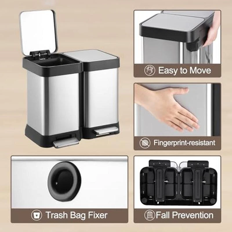 You may also like 14 Qt Aluminum Fry Pot W/Lid Perforated Basket Heavy Duty Handles Frying Cooking 73.79 USD 77.67 USD Free shipping 5% off Cute Cat Ear Gaming Chair Ergonomic Computer Chair Adjustable Footrest Headrest 98.78 USD 103.98 USD Free shipping 5% off Blue Shop Towels 30 Rolls 1650 Multi-Purpose Absorbent Durable Cleaning Soft New 85.44 USD 89.94 USD Free shipping 5% off Classic Corner Electric Fireplace TV Stand 55 Inch TVs Space-Saving Durable MDF 380.38 USD 400.4 USD Free shipping 5% off Dog Training Collar Remote 1000 Ft Waterproof Rechargeable Vibration Beep Static 54.61 USD 57.48 USD Free shipping 5% off CD Player Boombox & CD Cassette Player Combo Portable Programmable LCD Display 53.33 USD 56.14 USD Free shipping 5% off Bladeless Ceramic Space Heater Remote Control Oscillation Timer Adjustable Heat 107.73 USD 113.4 USD Free shipping 5% off Folding TV Tray Table 2 Pcs Portable Rustic Side Tables Space Saving Rectangle 39.5 USD 41.58 USD Free shipping 5% off 72 In Waterproof Heavy Duty Horse Turnout Sheet 1200D Winter Insulated Durable 92.67 USD 97.55 USD Free shipping 5% off 32 Gallon Heavy Duty Trash Can W/Locking Lid Easy Carry Handles Outdoor Use 2Pcs 74.0 USD 77.9 USD Free shipping 5% off 20 Pc Stubby Combination Wrench Set SAE Metric Alloy Steel Off-Corner Design New 89.34 USD 94.04 USD Free shipping 5% off 3-Tier Shoe Rack W/ Mesh Shelves Wood Seat Entry Bench Storage Organizer Rustic 76.25 USD 80.26 USD Free shipping 5% off About this item Quiet and Gentle Closure: The dual trash and recycling bins are equipped with a soft-close lid, ensuring a silent and peaceful environment. The internal hinge design prevents noisy lid slamming and reduces disturbances, enhancing the overall user experience with its quiet operation. Improved Kitchen Hygiene: Constructed from stainless steel, the recycling bin is resistant to fingerprints and dirt, helping to maintain a cleaner and more hygienic kitchen environment. The bottom seals further prevent spills and leaks, contributing to a cleaner and odor-free kitchen space, promoting a healthy and pleasant atmosphere. Convenient Hands-Free Operation: Each compartment of the garbage can boasts a sturdy steel pedal, allowing for convenient and hygienic hands-free operation. This feature proves especially useful in the kitchen when hands are full or dirty, enabling easy waste disposal without the need to touch the trash bins, adding convenience to daily waste management tasks. Space-Saving Design: Despite offering dual compartment functionality, the dual trash and recycling bins feature a compact design that conserves space in small kitchens or homes with limited space. The separate compartments for waste disposal and recycling make them a practical choice for households of all sizes, maximizing efficiency and convenience. Dual Compartment Recycling: The garbage can with lid is thoughtfully designed with two separate compartments for easy waste sorting and recycling. This dual compartment feature allows for efficient waste management and encourages recycling practices in the home, making it easier to separate and dispose of recyclable materials responsibly. Brand Takywep Capacity 10. 6 Gallons Color Silver Opening Mechanism Open-Top Material Stainless Steel Recommended Uses For Product Indoor Room Type Kitchen, Bathroom, Living Room, Bedroom, Office See more You may also like 8 Pack Solar Post Lights Waterproof Durable Outdoor Caps LED Garden Deck Pathway 57.28 USD 60.3 USD Free shipping 5% off Freestanding Portable Electric Fireplace Heater W/ Remote Control & Timer New 105.58 USD 111.14 USD Free shipping 5% off Convertible Baby Crib Toddler Daybed Full Size Bed Greenguard Certified Safe New 206.79 USD 217.67 USD Free shipping 5% off Folding Rollator Walker W/ Adjustable Seat Ergonomic Handles & Safety Features 79.41 USD 83.59 USD Free shipping 5% off Elevated Air Mattress Bed W/ Built-in Pump Fiber-Tech Comfort Top Full Size New 92.65 USD 97.53 USD Free shipping 5% off Bamboo Cheese Board Set W/ Hidden Drawer Serving Tools Ideal Gift Occasions New 37.99 USD 39.99 USD Free shipping 5% off Heavy-Duty Metal C-Stand Hammock Chairs Weather-Resistant Stable Support Black 129.04 USD 135.83 USD Free shipping 5% off LED Gaming TV Stand PS5 Xbox W/ Adjustable Glass Shelves Modern Console Black US 148.18 USD 155.98 USD Free shipping 5% off Folding TV Tray Table 2 Pcs Portable Rustic Side Tables Space Saving Rectangle 39.5 USD 41.58 USD Free shipping 5% off Adjustable Steel Mesh Zero Gravity Lounge Chair Set W/ Pillows Cup Holders New 117.32 USD 123.49 USD Free shipping 5% off 3-Tier Shoe Rack Storage Bench Entryway Organizer W/ Mesh Shelves Steel Frame US 59.26 USD 62.38 USD Free shipping 5% off 24 x 32 in LED Fogless Bathroom Mirror Dimmable 3 Color Backlit Wall Mount Hot 78.94 USD 83.09 USD Free shipping 5% off