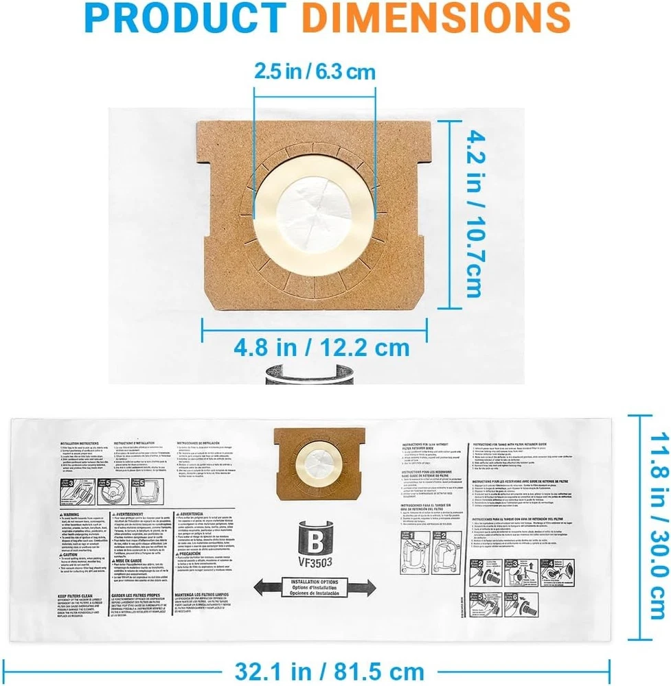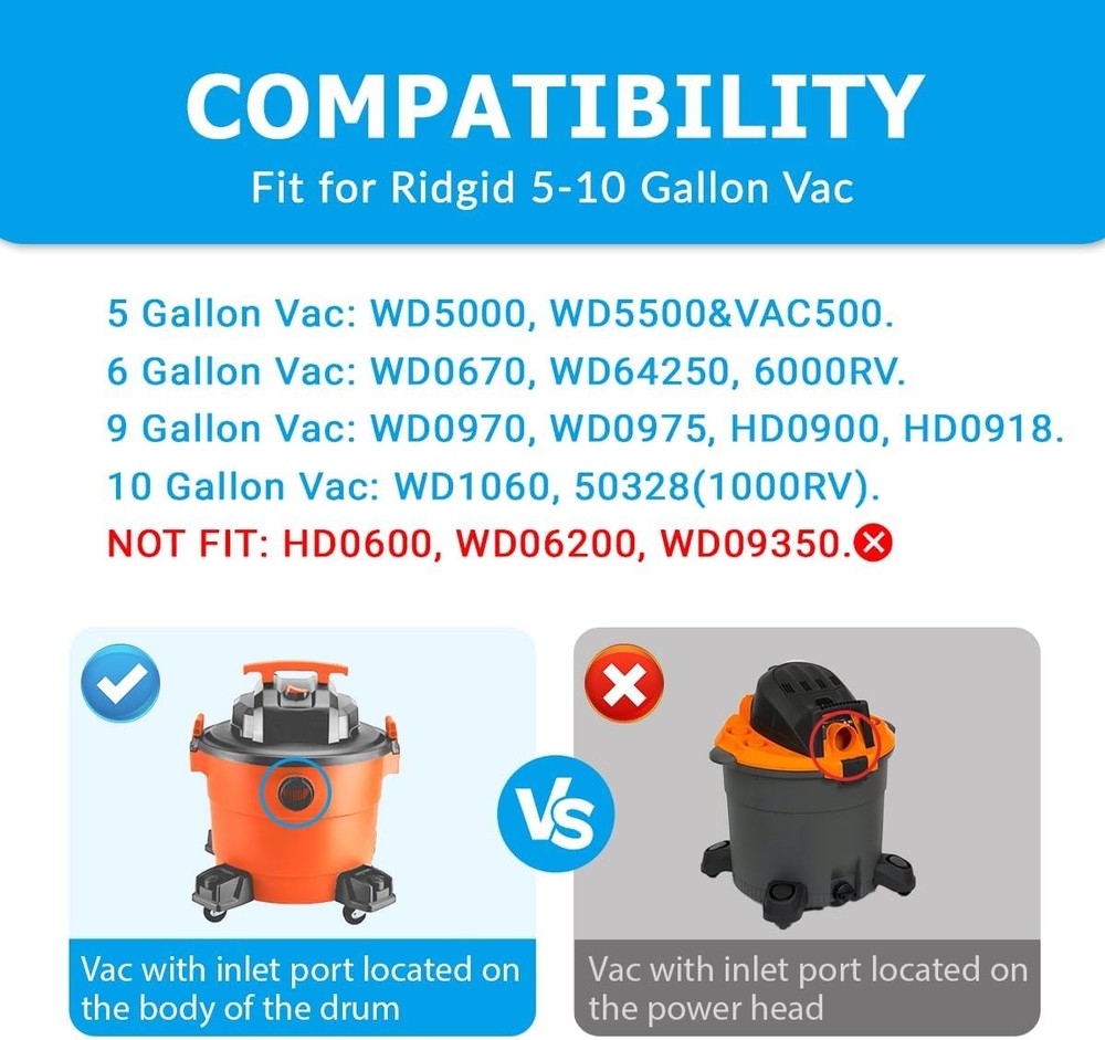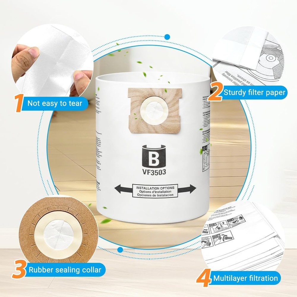 About this item COMPATIBILITY: Fit for ridgid VF3503 vacuum bags. Compatible with Ridgid 5 gallon wet/dry vac: WD5000, WD5500&VAC5000; 6 gallon vac: WD0670, WD64250, 6000RV; 9 gallon vac: WD0970, WD0975, HD0900, HD0918; 10 gallon vac: WD1060, 50328(1000RV). Size B, VF3503, high-efficiency dust bags.( ππŽπ“ π…πˆπ“: π‡πƒπŸŽπŸ”πŸŽπŸŽ, π–πƒπŸŽπŸ”πŸπŸŽπŸŽ, π–πƒπŸŽπŸ—πŸ‘πŸ“πŸŽ.) 2-PLY FILTRATION: VF3503 shop vac bags are made of 2-layer high efficiency filter material, lightweight, compact, not easy to tear. Effectively capture household garbage, sawdust, dirt, made for dry pickup only. WaveWhiz2 Your Best Online Business Partner 10 Gallon For Ridgid Shop Vac bags Size B VF3503 Dust Collection Vacuum Bags About this item COMPATIBILITY: Fit for ridgid VF3503 vacuum bags. Compatible with Ridgid 5 gallon wet/dry vac: WD5000, WD5500&VAC5000; 6 gallon vac: WD0670, WD64250, 6000RV; 9 gallon vac: WD0970, WD0975, HD0900, HD0918; 10 gallon vac: WD1060, 50328(1000RV). Size B, VF3503, high-efficiency dust bags. ( ππŽπ“ π…πˆπ“: π‡πƒπŸŽπŸ”πŸŽπŸŽ, π–πƒπŸŽπŸ”πŸπŸŽπŸŽ, π–πƒπŸŽπŸ—πŸ‘πŸ“πŸŽ.) 2-PLY FILTRATION: VF3503 shop vac bags are made of 2-layer high efficiency filter material, lightweight, compact, not easy to tear. Effectively capture household garbage, sawdust, dirt, made for dry pickup only. EASY CLEANING: Rubber sealing collar can lock the dust inside, prevent dust from spilling, keep inside of the vacuum drum clean, no need to clean the vacuum again. VALUE PACK: 10 Pack VF3503 Size B shop vac bags replacement for ridgid vacuum bags 5-10 gallon. Works like originals, but half price, save your money. Item Specifics MPN Does Not Apply Brand Unbranded Set Includes 10 pcs Vacuum Cleaner Bag Compatible Brand Universal Compatible Model For Size B VF3503 Type Vacuum Cleaner Bags Material Paper Payment Payment option: eBay payment. Shipping 1. Domestic Shipping: The item will be delivered within 3 to 5 business days. Handling time is 1 day 2. International shipping: Item will be shipped from our warehouse in Ohio, US. Transportation time is 15 to 30 days. There are 2 optional shipping services. Please check the "Shipping and Payment" part for reference. 3. Buyer will pay for return for buyer's reason. Returns 1. We offer buyers the option for replacement, exchange, or payment of the difference in price to exchange an item for another model 2. We offer Money back Guarantee. We make refunds for DOA (Damaged or dead on arrival) items, or items damaged or lost in transit 3. DOA: For items damaged or dead on arrival, the buyer is required to notify us through the messaging platform on eBay not later than 24 hours upon receipt of the goods. We will refund buyer or exchange the item based on buyer's request. 4. Our 60 days exchange policy is not common among sellers Contact Us Contact us now via eBay Message and you will get a same day response. Feedback Our number one goal is to be a 100% positive feedback partner with eBay. After completing your order we ask that you please leave us feedback. Positive feedback with 5 star ratings is much appreciated! If for any reason you are not content with your purchase, please DO NOT leave negative feedback. Prior to opening a case in the resolution center or opening a return request , simply email us explaining the issue you are experiencing and we will be more than willing to assist you and resolve the problem. WaveWhiz2 Your Best Online Business Partner DESCRIPTION PAYMENT SHIPPING RETURN POLICY CONTACT US Shop Category Store Home Other Hot Item New in Sealed Box Google Pixel 6a 5G 128/GB USA Unlocked Smartphone USD 233.99 Apple iPhone 8 Plus 64/256GB Unlocked Smartphone ALL COLORS !New Sealed! USD 182.99 Brand New in Box Samsung Galaxy Z Fold 7 1TB F966U 5G USA Unlocked AI Smartphone USD 1319.99 Brand New in Box Samsung Galaxy S24 Ultra 1TB G928U 5G USA Unlocked Smartphone USD 879.99 New *UNOPENDED* Apple iPhone 7 Plus Verizon Unlocked Smartphone/128GB/RED HK USD 181.99 Picture New List Item Brand New in Box Samsung Galaxy Z Fold 7 1TB F966U 5G USA Unlocked AI Smartphone USD 1319.99 Brand New in Box Asus Zenfone 12 Ultra 512GB 16GB USA Unlocked Smartphone US USD 1099.99 Brand New in Box Sony Xperia 1 V 512GB 12GB RAM USA Unlocked Smartphone US USD 1099.99 Brand New in Box Samsung Galaxy S24 Ultra 1TB G928U 5G USA Unlocked Smartphone USD 879.99 Brand New Samsung Galaxy S25 Ultra 1TB 12/16GB G938U 5G USA Unlocked Smartphone USD 1143.99 Help & Info Payment Policy Shipping Policy Return Policy FAQ About Us 10 Gallon For Ridgid Shop Vac bags Size B VF3503 Dust Collection Vacuum Bags About this item COMPATIBILITY: Fit for ridgid VF3503 vacuum bags. Compatible with Ridgid 5 gallon wet/dry vac: WD5000, WD5500&VAC5000; 6 gallon vac: WD0670, WD64250, 6000RV; 9 gallon vac: WD0970, WD0975, HD0900, HD0918; 10 gallon vac: WD1060, 50328(1000RV). Size B, VF3503, high-efficiency dust bags. ( ππŽπ“ π…πˆπ“: π‡πƒπŸŽπŸ”πŸŽπŸŽ, π–πƒπŸŽπŸ”πŸπŸŽπŸŽ, π–πƒπŸŽπŸ—πŸ‘πŸ“πŸŽ.) 2-PLY FILTRATION: VF3503 shop vac bags are made of 2-layer high efficiency filter material, lightweight, compact, not easy to tear. Effectively capture household garbage, sawdust, dirt, made for dry pickup only. EASY CLEANING: Rubber sealing collar can lock the dust inside, prevent dust from spilling, keep inside of the vacuum drum clean, no need to clean the vacuum again. VALUE PACK: 10 Pack VF3503 Size B shop vac bags replacement for ridgid vacuum bags 5-10 gallon. Works like originals, but half price, save your money. Item Specifics MPN : Does Not Apply Brand : Unbranded