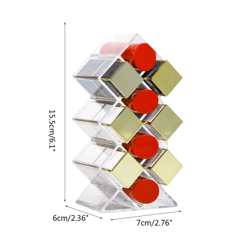 Description: Features: and high Stable structure: With stable and firm structure, this can stand, lay flat perfectly and be stacked together according to the shape of the edges. 10 spaces: For you to organize your lipsticks or other small beauty supplies. The size of will fit small to large base lipsticks. durable and acrylic material, the has a clear and body, which is easy to Clear body and special appearance make it elegant decoration for your dresser. This practical makeup with decorative look makes a great holidays, Christmas, and birthdays. Specification: Acrylic Color: As pictures shown. 1 Size: app. 2.5x2.5cm/0.98x0.98 Quantity: 1 pc Note: 1cm=10mm=0.39inch No retail package. Please allow 1-3cm error due to manual measurement. pls make sure you do not mind before you bid. Due to the difference between different monitors, the picture may not reflect the actual color of the item. Thank you! Package includes: 1 x Lipstick other accessories in the picture is not included.)