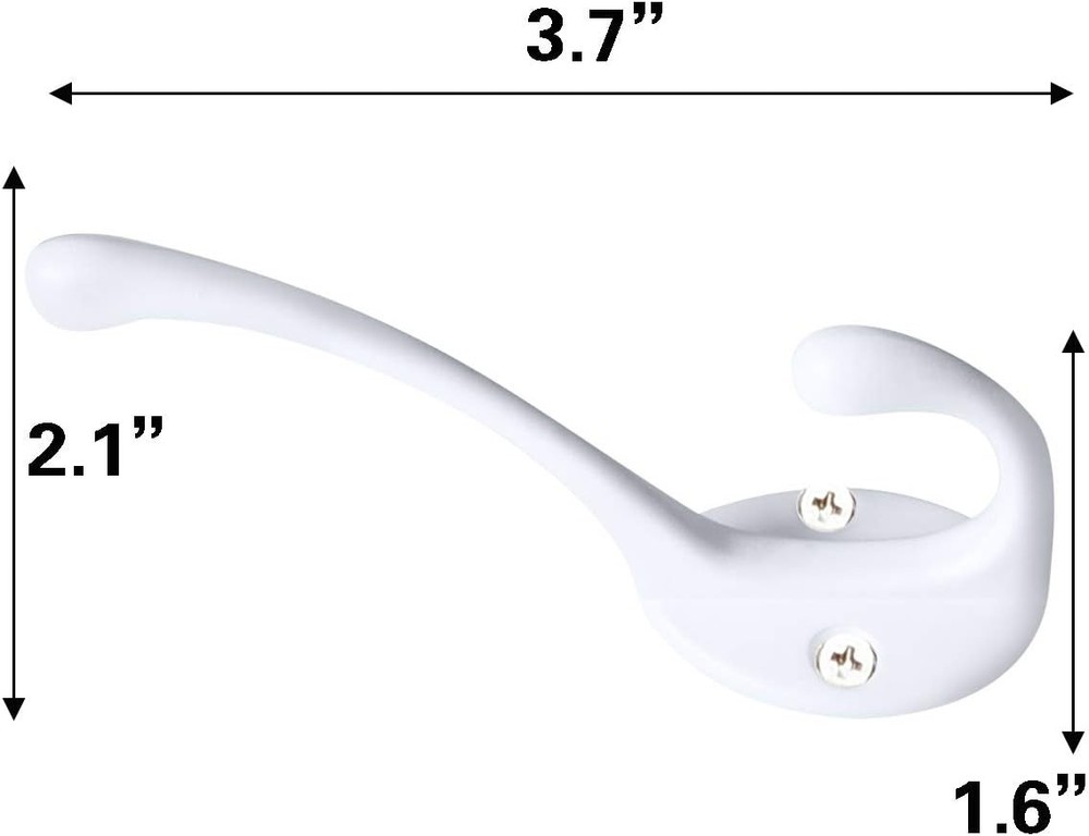 10 Pack Heavy Duty Dual Coat Hooks Wall Mounted with 20 Screws Retro White Product Details Color: White Brand: IBosins Material: Zinc alloy and iron Finish Type: Iron Mounting Type: Wall Mount Weight Limit: 35 Pounds Special Feature: Heavy Duty, Rust Resistant Recommended Uses For Product: Towel, Key Hanger, Wall, Coat Number of Hooks: 10 Minimum Weight Capacity: 35 Pounds Surface Recommendation: Drywall Maximum Weight Recommendation: 35 Pounds Manufacturer: IBosins Part Number: CH10 Item Weight: 7.4 ounces Package Dimensions: 6.81 x 4.61 x 1.77 inches Item model number: CH10 Is Discontinued By Manufacturer: No Finish: Iron Maximum Weight Capacity: 35 Pounds Special Features: Heavy Duty, Rust Resistant Batteries Included?: No Batteries Required?: No Color: White Brand: IBosins Material: Zinc alloy and iron Finish Type: Iron Mounting Type: Wall Mount High Quality Material:These heavy duty dual prong hooks are made of good quality zinc die cast material, the screws are made of iron, no rust, it can easily hold up to 35 lbs of weight. Hard and sturdy, can widely support coat, scarf, umbrella, bag, towel, key, hat, cup as well as Christmas socks and Christmas wreath Multiple Applications:These retro hooks design with double hooks, perfect for use in bathroom, bedroom, closet, foyer, entryway, fence hanging towels, coat, hats, purse, jackets, robe, back packs. DIY pellet coat rack, and make them easy to find. These double hooks is a good way to store your space Easy to Install: This Classic wall mounted double hook is very easy to install in your home. Each coat hook comes with 4 mounting screws of two different length options 2 of 25 mm or 1 inch AND 2 of 16 mm or 0.6 inch. You can use our 1 inch screws to install coat hooks directly on a wall, when dealing with closets, doors or wooden board, you can use our 0.6 inch screws Package Includes: This package includes 10 pieces of wall mounted hooks with 20 pieces of long screws and 20 pieces of short screws, totally 40 screws These coat hooks are made of good quality zinc die-cast material, the screws are made of iron.