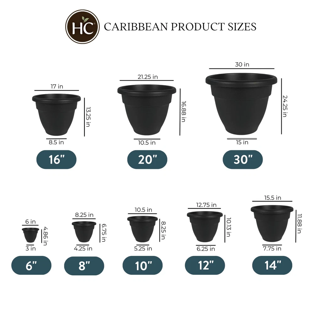 These colorful planters are perfect to beautify any area, outdoor or indoor. Lightweight and durable, these pots are weatherproof, so they can be left outside without the worry of them cracking or color fading. Grow a wide range of plants in these containers such as vegetables, ornamentals, herbs, and more. These pots nclude drain plug to avoid overwatering of your plants. DURABLE & LIGHTWEIGHT - Made from polypropylene plastic, these plant pots are sturdy and lightweight. The rolled rim helps you to easily move the container, even when it is full of soil. It won't break or crack when lifting. DRAINAGE HOLE WITH REMOVABLE PLUG – Remove the plug for drainage or leave it in. The contoured base of these pots helps protect plants from excess watering. TRADITIONAL DESIGN - Trendy colors and a classic look allow this decorative pot to fit into any indoor & outdoor setting. These plastic plant pots are UV resistant and will not crack or color-fade over time. GREAT FOR A VARIETY OF PLANTS - These round planters come in several sizes and are great for indoor houseplants, as well as outdoor gardening on your patio, porch or deck. Use them to grow vegetables, flowers, herbs, snake plants and more. MADE IN THE USA - For over 35 years, has been manufacturing horitcultural containers. This pot was proudly manufacturer at our factory in Ohio.