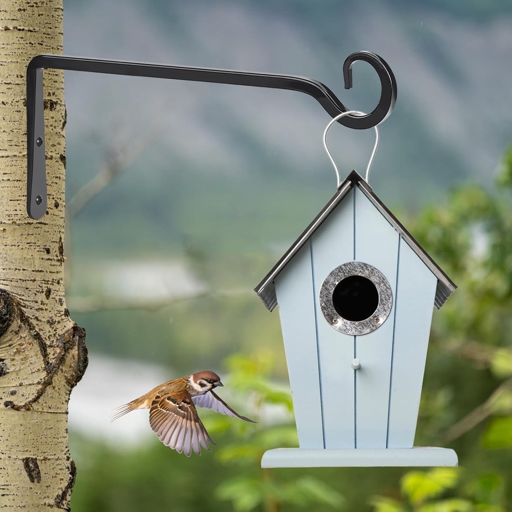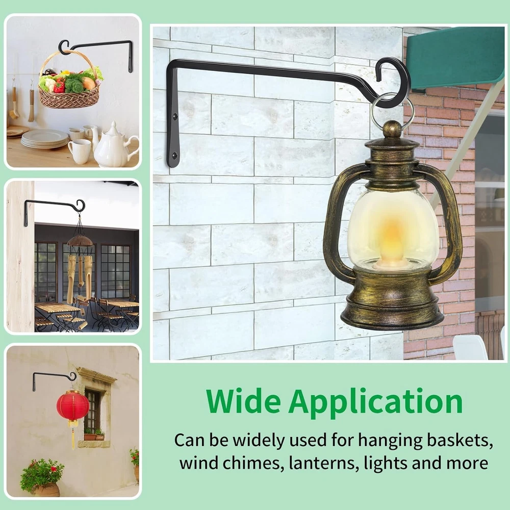 $ 12.2710-Inch Black Wall Hooks for Flowers, Feeders & More - Hand-Forged Bracket Set