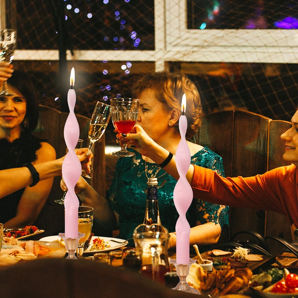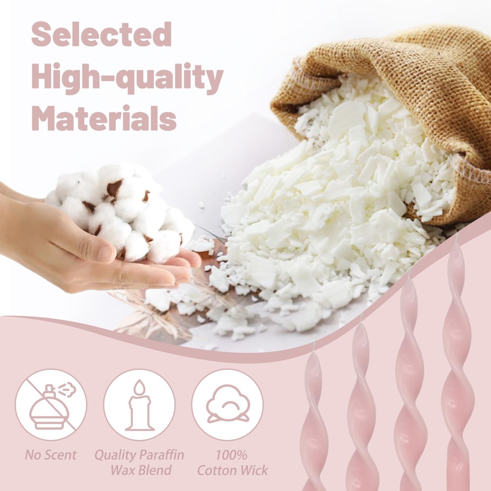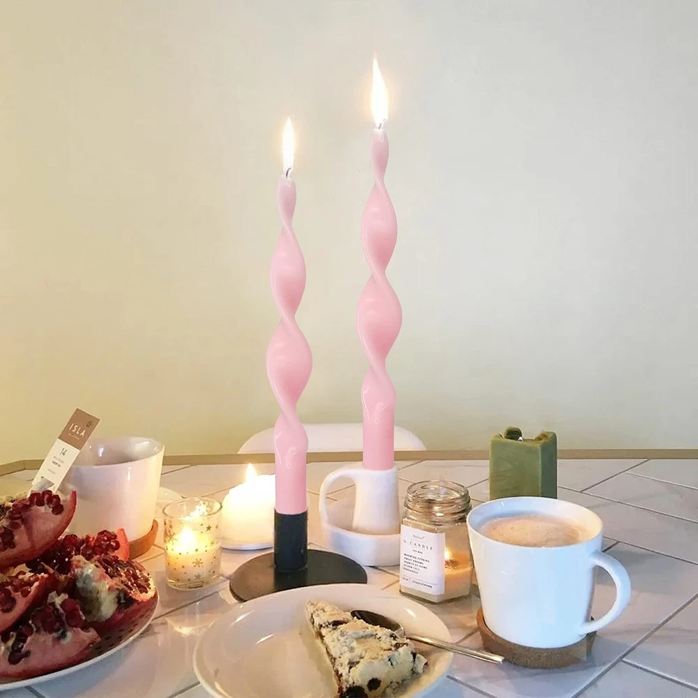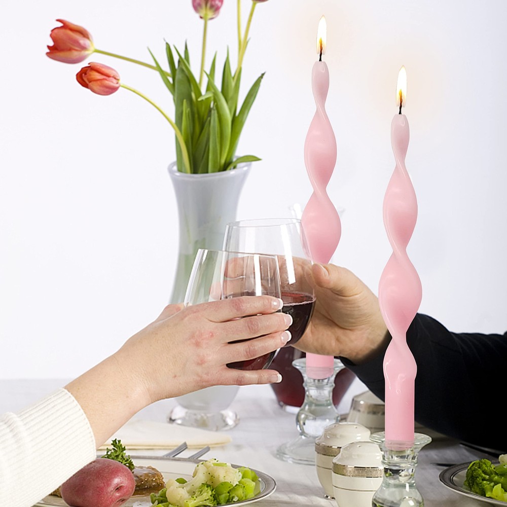1. These spiral taper candles are absolutely gorgeous! The pink swirl design adds such a fun and elegant touch to my dining table. They burn evenly and look stunning when lit—perfect for weddings, parties, or just adding a little charm to everyday decor. Love that they're unscented and eco-friendly too! Highly recommend for anyone wanting to elevate their space effortlessly.