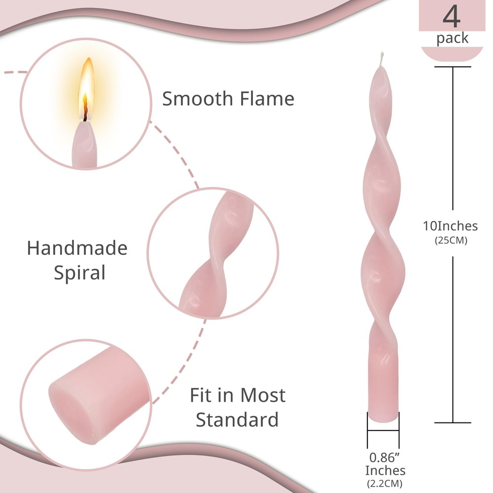 10 Inch Pink Spiral Taper Candles Unscented Twisted Candlesticks