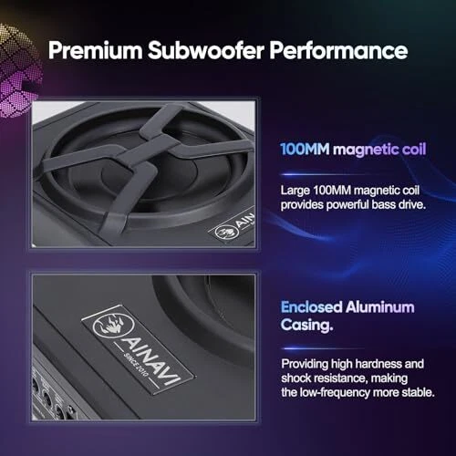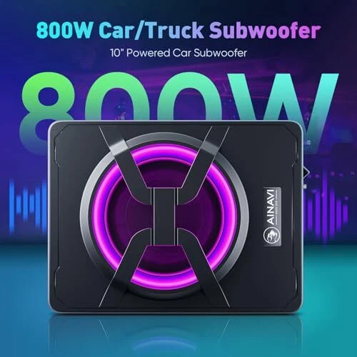 Return Policy Fast Delivery Trusted seller 10 Inch Under Seat Car Subwoofer Bass Active Stereo with Multi Colors Ambient Lighting,Built-in Amplifier 800 Watts Max, Remote Control and Enclosure Product Description CX-80 thin type 10" Active Car Subwoofer in sealed aluminum enclosure. Fashion multi-colors ambient lighting, controlled via smart phone app or remote controller. Built-in Amplifier. 800 Watts peak power output, 220 Watts RMS. With high speed MOSFET power supply, improved switching speeds, lower thermal impedance for higher switching frequencies. Amp Features: (1) Variable Low-Pass Filter, frequency 50Hz-250Hz; (2) Low-Level Inputs (RCA)- High Level Inputs, for options; (3) Variable Bass Boost & GAIN Input, adjust the low bass within the boost range to just the way you like it. Dimensions: 343mm*260mm* 82mm / 13.5”x10.2”x3.2" ; Unit Weight: 8 Lbs. The combination of amplifier and subwoofer all into one, make it is easy to be installed under the passenger’s seat. Complete Wiring Kit & high to low level inputs adapter in the package, make the installation more easy. For the safety, we strongly encourage professional installation of this active car subwoofer. We provide a one-year product warranty and professional technical support. Please do not hesitate to contact us via email, we will reply ASAP! Shipping Returns Payment Shipping Shipping is FREE to all addresses other than APO/PO boxes in the lower 48 states. All our stock ships from US-based warehouses. Shipped via USPS or UPS (depending on location and package weight) Unless stated otherwise, all orders will ship within 24-72 hours of your payment being processed. Check our feedback to see the great reviews of FAST shipping we offer. Returns Seller does not accept returns Payment We currently accept payment via eBay managed payments only. Once payment is cleared, we will dispatch your shipment within 1-3 business days. Please refer to the "Shipping" tab for more information regarding shipping speed to your destination.