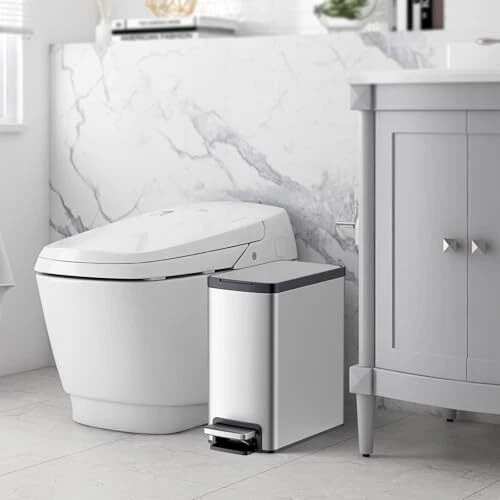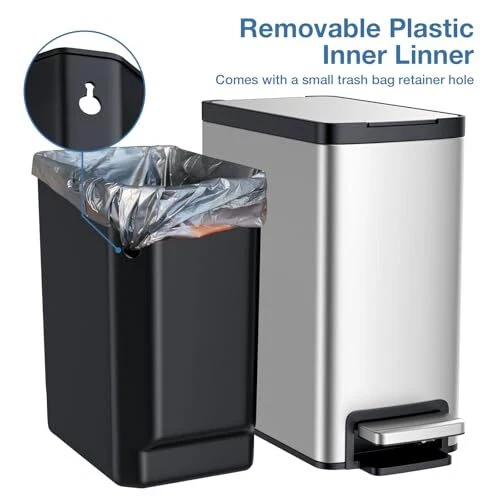 10 Liter/2.6 Gallon Step Trash Can with Soft Close Lid,Rectangular Foot Silver