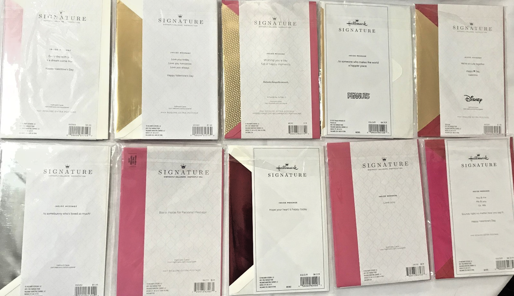Valentine's Day Signature Premium Cards from Hallmark Features: Lot Includes 10 Cards - 10 Different Designs Includes 1 Peanuts Gang, 1 Mickey & Minnie Mouse Comes with Coordinating Fancy Envelope Distinctly Hallmark. Distinctly You. Individually Packaged If you wish to purchase multiple items from me you can easily do so and request one invoice for everything: 1. Simply add all items to your cart, either through the 'Buy it now' or 'Add to cart' buttons. 2. Once you have the items in the cart, near the top, there is a link to 'request total' 3. Click on that link, it will take you to a page titled 'Request total from seller.' You will see the message 'You have not committed to buy these items yet.' 4. Scroll down to the bottom of the page, there is a button titled 'Commit to buy & submit request'. Once you click on that, it will notify me of the sale and request that I create a combined invoice. That’s all there is to it! Please let me know if you have any questions or issues. Thank You for looking!