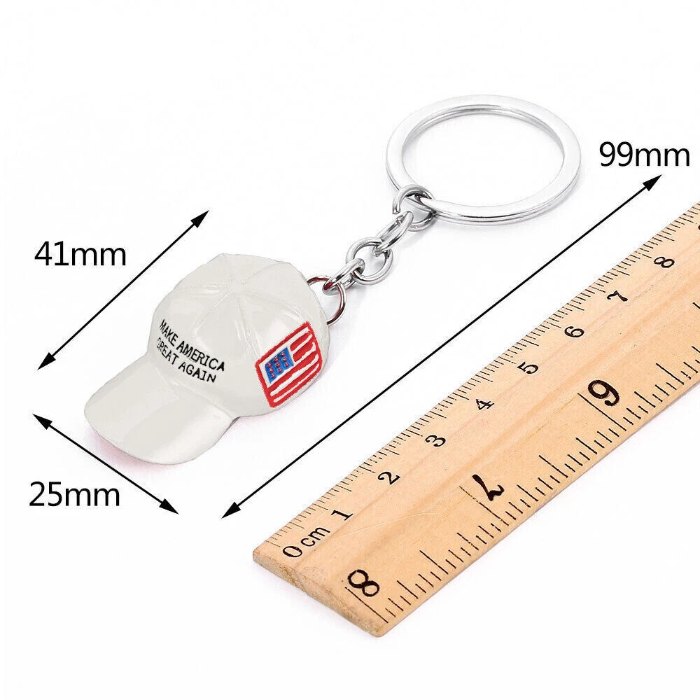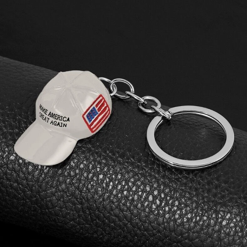 Show your support for Donald Trump with this MAGA Hat Keychain. Made of quality metal, this keychain features a beautiful American flag design that adds a touch of uniqueness to your keyring. The keychain is perfect for people who want to show their love for the United States of America and President Trump\\\\'s 2020 and 2024 presidential campaigns. It is an ideal gift for a Donald Trump fan! Add this to your collection today and show your support for President Trump! I will package well and ship right away. Thank you!