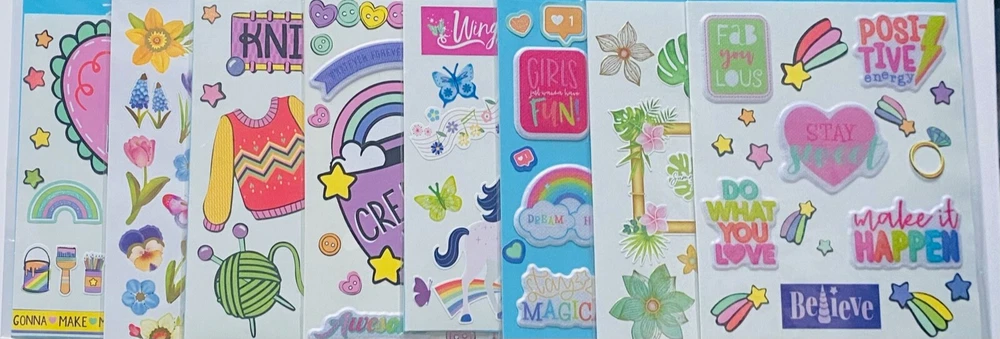 Color: Pink Blue Purple Green Yellow Orange Pastel Neon Matte Theme: Holiday XMAS Birthday Gifts Type: Bubble Dimensional Metallic Foil Pop Up Embosed Decal Neon Brand: HALLMARK STICKERLAND HAPPY PLANNER BLOOM RECOLLECTIONS UPC: Does not apply gtin13: Does not apply