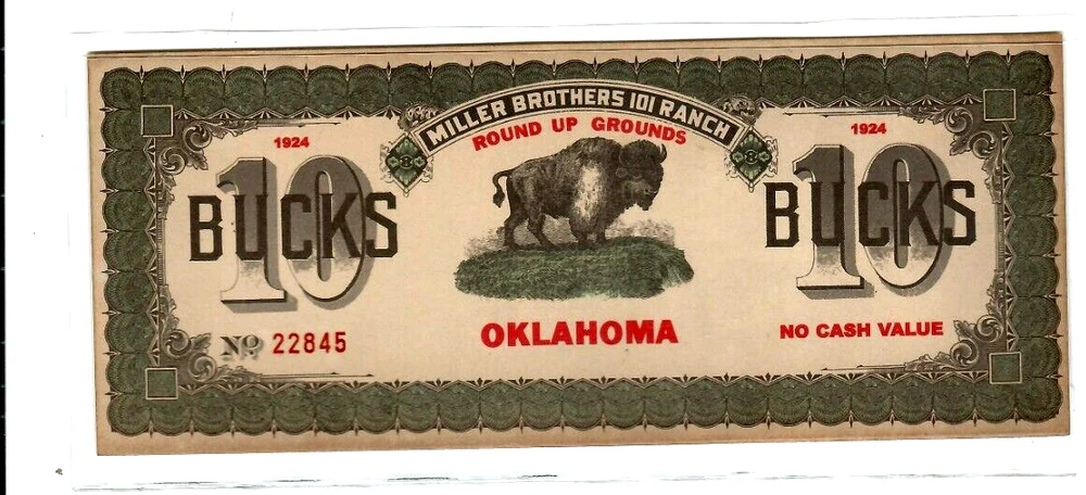 $10 "OKLAHOMA" (GOLD BUCKS)1924 (PONCA CITY) "BUFFALO"(OKLAHOMA) UNCIRCULATED!!