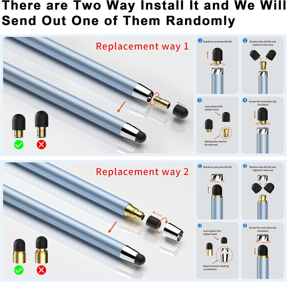 Store New Arrivals Add to Favorite View Feedback Contact Fast deliveries to the customer's home Quality customer service John Make the customers happy! 10 PCS Stylus,Stylus Pen for Touchscreen,Stylus 2-In-1 High Sensitivity & Precision Suitable for All Touch Screens of Iphone/Ipad/Android Tablets(10 Stylus Pen + 20 Tips) Description 【Stylus Pen for Touchscreen】Our stylus pen requires no Bluetooth pairing or charging, you can unleash your creativity anytime and anywhere, just pick up the stylus and express your thoughts freely on the touch screen. 【2-in-1 Stylus】The stylus is made of lightweight aluminum alloy, and the pen tip adopts a diamond-shaped checkered design that is highly recognizable. There are rubber pen tip designs of different sizes on both ends, suitable for different usage scenarios. The stylus frees up your fingers and provides greater sensitivity and screen performance. 【High Sensitivity & Precision】The ipad stylus can flexibly fit on the screen without delays, interruptions, or screen scratches, allowing you to have a smoother writing or drawing experience and enhance your creative pleasure. 【Wide Compatibility】Universal styluses for use with all touch screen devices including smartphones, Apple iPad/ iPhone/ iPod/ Android tablets and other capacitive touch screen devices. You can use it like a real pen. 【Stylus Pen Set】You will get 10 stylus pens of different colors and 10 0.27-inch, 10 0.21-inch replaceable rubber pen tips in one package. If you have any questions about the stylus pen for touchscreen, please feel free to contact our customer service team, We will solve it for you as soon as possible. Product Description The video showcases the product in use. The video guides you through product setup. The video compares multiple products. The video shows the product being unpacked. hero-video Merchant Video DAXINGXING 10PCS 2 in 1 Stylus Pen for Touchscreen Easy to Replace the Tip Broad Compatibility Works with All Devices with Capacitive Touch Screens 1 Working 2 Drawing 3 Note Taking 4 Playing Games Item model number C-516 Item dimensions L x W x H 7.08 x 2.87 x 0.55 inches Are Batteries Included No Color Grey/Gold/Purple/Green/Blue/White/Silver/Black Product Dimensions 7.08 x 2.87 x 0.55 inches Material Aluminum Country of Origin China Compatible Devices Tablets, iPhone, iPad,Touch Screen Devices Item Weight 0.26 Pounds Batteries Required? No ABOUT US We offer the best prices around on high quality products. Our E-store includes media such as books, movies, music and games while offering electronics, toys, sporting apparel, clothing, tools, general home, garden items and more. SHIPPING We are always working hard to ensure your package arrives as soon as possible. Please understand that some factors like weather, high postal traffic, and the performance of shipping companies are outside of our control. We offer free shipping to the lower 48 states and ship within 2 business days of payment, usually sooner. We do not accept P.O. Boxes. Please provide a physical address. For shipping outside of the continental USA, we only use eBay's Global Shipping Program. The item is shipped to KY and then sent to the rest of the world. International customers are responsible for all duties and taxes. Continue to 'check out' to calculate costs for shipping the item to your country. Messages regarding eBay's Global Shipping Program MUST be directed at eBay EXCLUSIVELY. RETURNS We offer a 30-Day Return Policy on items in which you are not completely satisfied with. You have the option of a full-refund or an exchange of the item. No returns are available on items shipped outside of the USA PAYMENT We accept PayPal. CONTACT US This page content is yet to come Please ad us to your favorite seller and visit again later Thank You CUSTOMER SATISFACTION We try our very best to make sure every customer is completely satisfied. If there's a problem, message us! We're happy to help. WE ACCEPT
