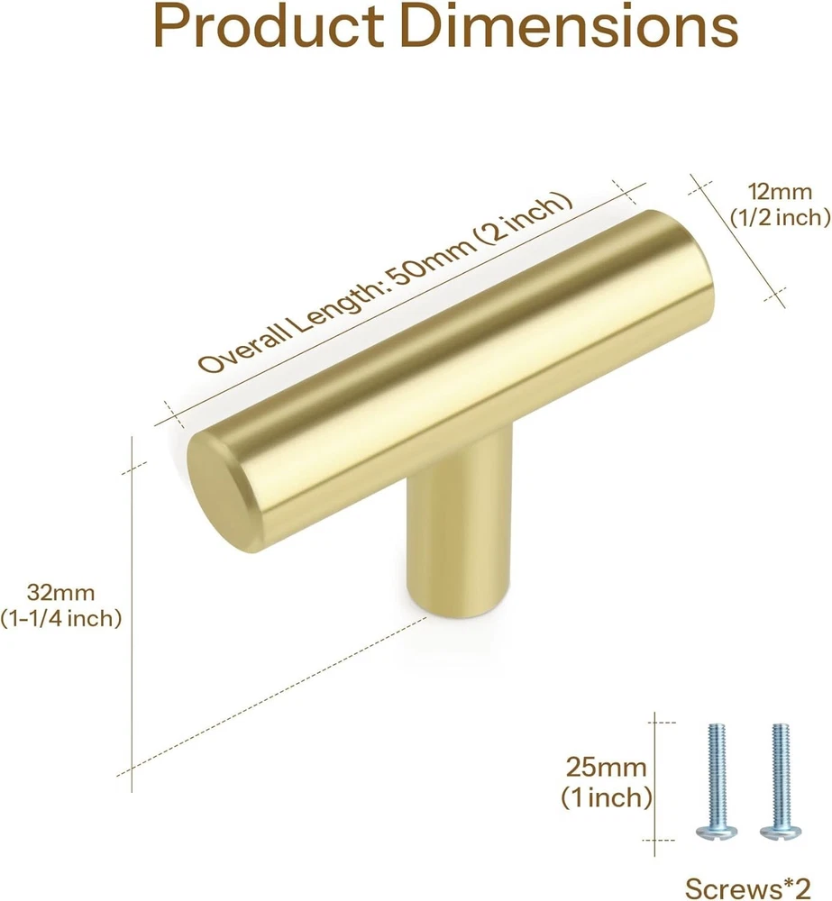 10 Pack 2 Inch Kitchen Knob Handles Brushed Brass Cabinet Pulls Gold Drawer (Free & Fast Shipping) 10 Pack Gold T-Bar Cabinet Knobs – Elegant & Durable Brushed Brass Drawer Pulls for Cabinets, Dressers & Closets ✨ Transform Your Home with Sleek, Modern Cabinet Knobs! ✨ Looking to refresh your kitchen cabinets, dressers, or closet doors with a touch of luxury? These brushed brass T-bar cabinet knobs are the perfect upgrade, adding a modern yet timeless aesthetic to any space. With their sturdy aluminum alloy construction, smooth texture, and easy installation, they’re designed to offer both style and functionality for years to come! ⭐ Premium Quality & Sophisticated Design Crafted from high-grade aluminum alloy, these gold cabinet knobs are built for durability and long-lasting performance. The brushed brass finish provides a sleek, modern look, while the smooth, rounded edges ensure a comfortable grip without any sharp corners. Rust-resistant and wear-resistant, these knobs maintain their shine and strength over time, making them ideal for both residential and commercial use. 📏 Perfect Size & Versatile Application These 2-inch gold drawer pulls are designed to fit a variety of furniture styles and sizes, from kitchen cabinets to wardrobe drawers. Whether you're upgrading a modern, contemporary, or classic space, these versatile handles blend seamlessly with any decor. ✔ Overall Length: 2 inches (50mm) ✔ Height: 1.25 inches (32mm) ✔ Diameter: 0.5 inches (12mm) ✔ Single Hole Installation for a clean, minimalist look 💡 Ideal for ✅ Kitchen Cabinets & Drawers: Enhance your kitchen with a luxurious gold touch ✅ Bathroom Vanity: Upgrade your bathroom storage with stylish and functional handles ✅ Closets & Wardrobes: Add elegance to bedroom furniture and closet doors ✅ Office & Study Desks: A chic upgrade for office furniture and home workspaces ✅ TV Stands, Shoe Cabinets, and More! 🔧 Hassle-Free Installation – DIY Friendly! No need to hire a professional—install these cabinet knobs in minutes! 1️⃣ Mark the installation spot 2️⃣ Drill the necessary hole 3️⃣ Secure the knob using the included screws That’s it! A simple and effortless way to instantly transform your space. 💎 Why Choose These Gold Cabinet Knobs? ✔ Elegant & Timeless Design: A perfect blend of modern and classic aesthetics ✔ Durable & Rust-Resistant: Made from premium aluminum alloy for long-term use ✔ Smooth & Comfortable Grip: Rounded edges prevent scratches and ensure comfort ✔ Multipurpose & Versatile: Ideal for kitchens, bathrooms, offices, and more ✔ Quick & Easy Installation: Comes with screws for a seamless DIY setup ✨ Give Your Cabinets a High-End Designer Look! A simple upgrade like these brushed brass cabinet knobs can make a huge impact on your home's aesthetic. Whether you're remodeling your kitchen, revamping a vintage dresser, or adding a touch of elegance to your wardrobe, these handles will elevate your space effortlessly. 🔹 Premium craftsmanship, elegant finish, and a modern touch everything you need for a stylish home!