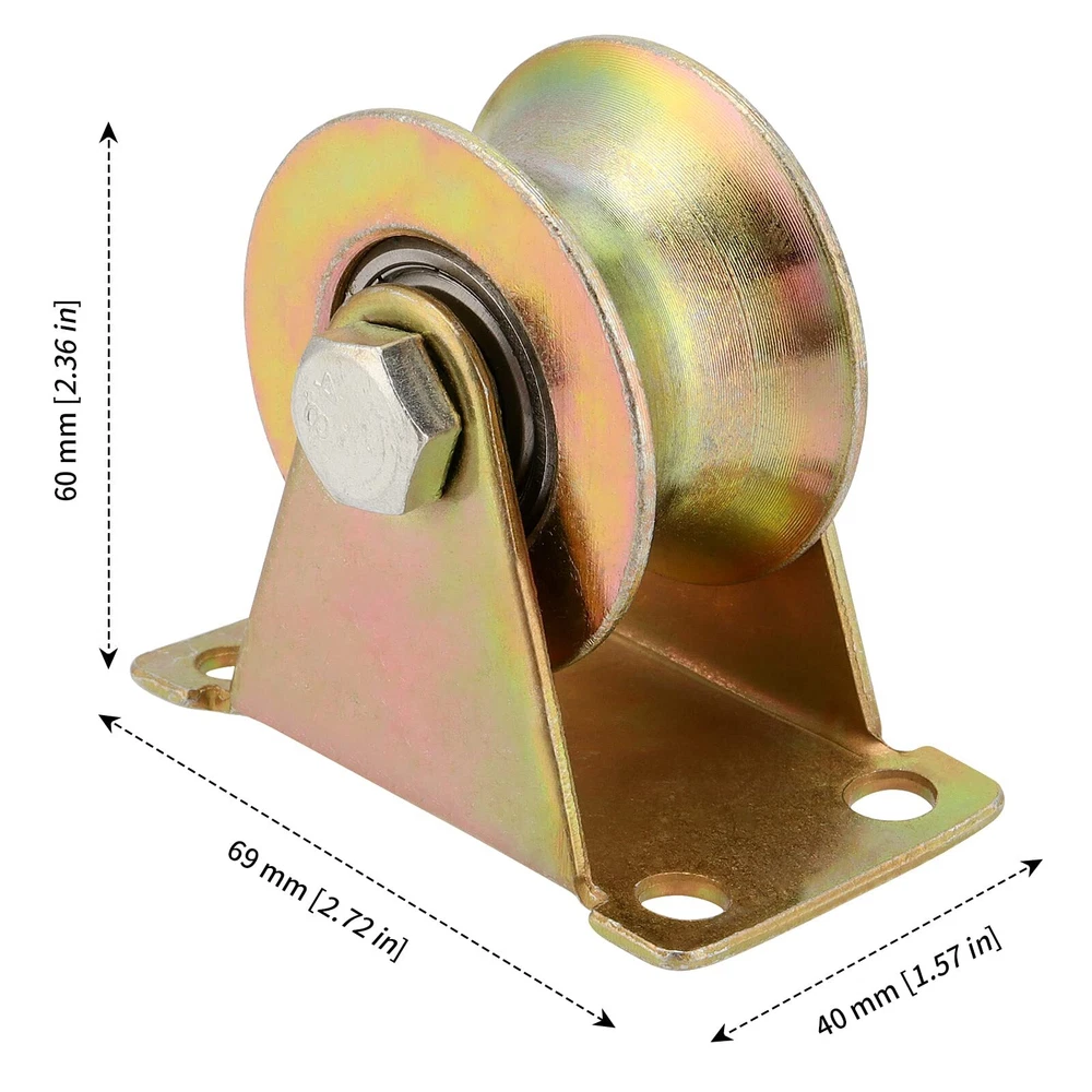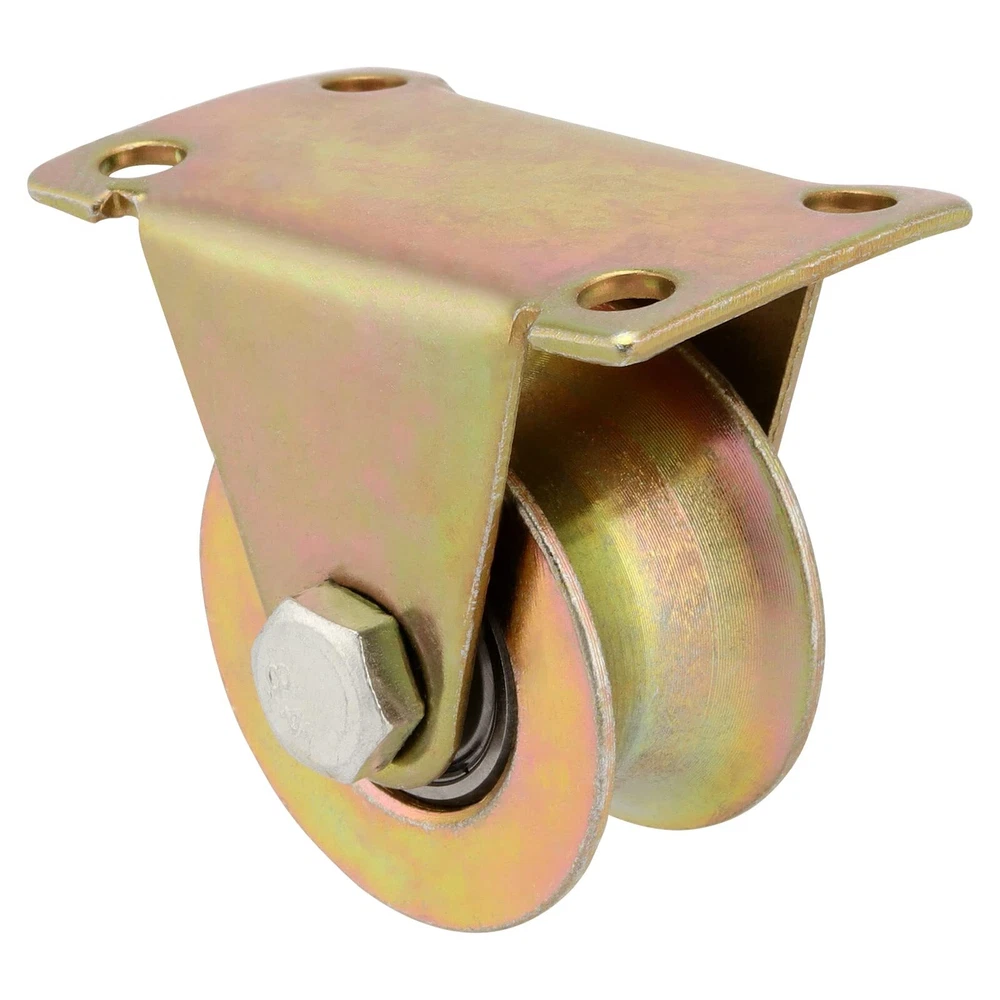 ABOUT US is focused on customer satisfaction as a priority. We are committed to introducing products that provide convenience as well as fun to your life. Please keep following our brand for further new products. WHY US? ➤Made of 45# steel, these u-groove steel wheels are very nice quality with a gold-plated finish. ➤There are 4 pre-drilled screw holes on the bottom plate of u groove wheel pulley. The axle/hole diameter is about 5/16 inches. ➤With built-in rolling bearings, 2 inch u groove wheel provides you with a more stable and smooth sliding experience. ➤with a 3/4-inch thick round tube track and it is strong enough with a maximum load capacity of 660 lbs. SPECIFICATION: Material: 45# steel Color: gold Caster width: 1.06 inches Wheel diameter: 2 inches Bottom Plate: 2.64 x 1.57 inches Mounting Height: 2.36 inches Load Capacity: 660 lbs Quantity: 10 x U Groove Wheel Pulley 【WELL-BUILT】 Constructed from 45# steel with a gold galvanized finish, this u-groove steel wheel is reliably rigid and corrosion resistant, so it is durable enough to withstand many extreme environmental conditions. 【SIZE DETAIL】 The package includes a total of 10pcs u groove track wheels, each main wheel body is 2 inches in diameter, the caster height is 2.36 inches, and the width is 1.06 inches. This wheel can perfectly fit the 3/4 inch diameter round tube orbit. 【STRONG LOADING CAPACITY】 Each u groove wheel pulley is compact yet has a huge load-bearing capacity, up to 660 lbs. The internal bearings make it slide more evenly and stably, reduce vibration and noise, and are perfect for use with inverted rails. 【WIDE RANGE OF USES】 2 inch u groove wheel can be bolted or welded up/down/side mounted for use on inverted tracks, wire rope guides, garage doors, sliding doors, container racks, roller shutters, industrial equipment, yard doors, patio sliding doors, etc. 【NICE 】 All customers who at are entitled to a 30-day money back and 7x24 hrs support. Everything we do is to make your shopping worry-free. If this u groove wheel is what you need, add it to your cart now!
