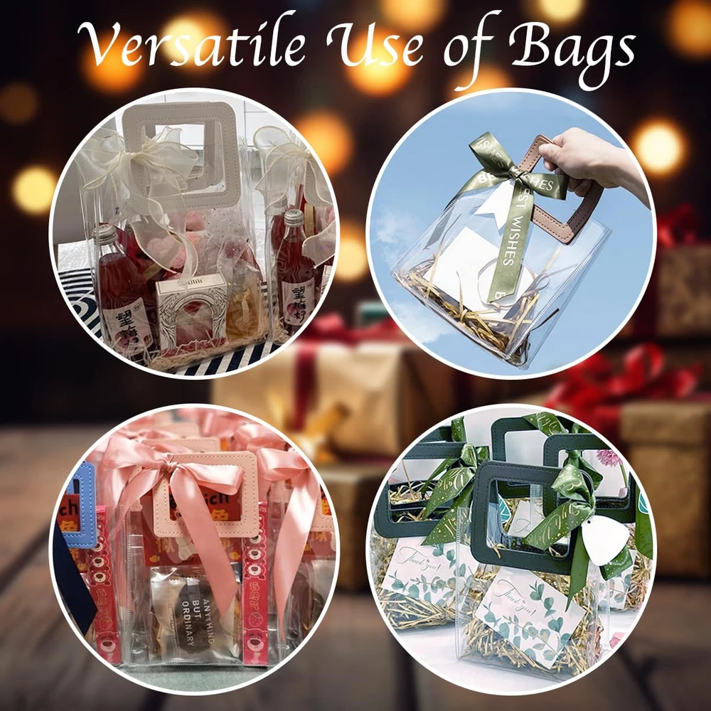 Size and Quantity: The package contains 10 clear gift bags with handles, each measures 8"x 3.1"x 8"/ 20x8x20 cm, portable size for your convenience, for your daily shopping needs, ideal size to hold party favors or gifts. Resistant Material: Our clear gift bags are made of polyvinyl chloride, thick and easy to carry, waterproof, easy to wipe, collapsible, easy to store, reusable and durable! The transparent design allows you to easily see the gift you are giving! Strong PU Handle: The white handles are made of PU material, which is stronger and more durable than ordinary handles, and can hold more weight. White handles add color to the transparent bag, making it look less monotonous and more sophisticated! Square Design: Square pull handle design for better usage, carry things more convenient, square bag body, can stand, not easy to crooked. Elegant and stylish, this clear shopping bag will make you stand out from the crowd and catch everyone's eye! Wide Application: Our clear gift bags can be used as gift bags, retailer bags, shopping bags, DIY craft bags. Perfect suitable for groceries, parties, weddings, baby shower, celebrations, festivals, bridal shower, Christmas, fashion items.