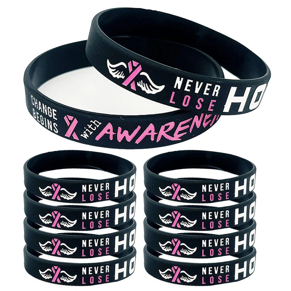 10 Pack Breast Cancer Awareness Silicone Bracelets Survival Charms Wristbands Choose your favourite color from the drop down menu Quantity advertised is 10pcs Adult Approximate Size: 210mm*12mm(8.3"*0.5") Please order without any hesitation! You can even keep a spare one in your pocket or bag. Note: Due to the difference between different monitors, the picture may not reflect the actual color of the item. Your understanding will be highly appreciated. Package Included: 10x Breast Cancer Awareness Bracelets Each imprinted with “Hope, Strength, or Courage, Faith” Raise awareness and support at your next Breast Cancer Awareness fundraiser or event with these popular silicone Breast Cancer Awareness Camouflage Bracelets. Designed with deep pink, white and light pink colors and the encouraging words "Hope" and "Strength" imprinted on each, everyone will want to get their hands on these inspirational accessories. Make sure you wear your wristband at all times. You can keep it on even while you bathe as these are waterproof. If you are interested in more products, please kindly have a look at our eBay shop. Thank You for shopping with us and we hope to see you soon! Payment Delivery details Terms of sales About us Contact us Payment We accept PayPal , Payoneer, VISA, Bank Wire Transfer, etc. We only ship to confirmed eBay addresses . Your eBay address MUST MATCH your Shipping address. Delivery details 1. All items will be shipped within 24 - 48 hours after full payment is received. ( excludes weekends and holidays ) 2. United States Delivery time to below: - SpeedPAK Shipping -------------------------------- 7 - 12 business days 3. Global Delivery time to below: - China Shipping -------------------------------- 15 - 30 business days 4. If you have not received your shipment within Delivery Estimate , please feel free to contact us. We will track the shipment and get back to you as soon as possible with a reply. Our goal is customer satisfaction! Terms of sales About Import Tax: 1. Import duties, taxes and charges are not included in the item price or shipping charges. These charges are the buyer's responsibility. 2. Please check with your country's customs office to determine what these additional costs will be prior to bidding/buying. 3. Some countries' customs may charge taxes for importing good from another country such as Import Duty, Value Added Tax, a Purchase Tax, Customs clearance fees etc. 4. Buyers as importer are responsible for paying such costs. Buyers can not request to cancel the auction or request for refund or resend under this situation. About us Please contact us via eBay Message if you have NOT received item after 30 days , we will check it with post office, and then resend or refund any missing items. If you receive a wrong item or a dead-on-arrival (DOA) item, pls contact us asap for a resend or refund. Contact us If you have any question, pls don't hesitate to email us: Our working time is 9:00-18:00 [Beijing Time] ( Except Weekends ). During that period of time, we will reply to you as quickly as possible. We greatly appreciate your Positive Feedback . Pls do NOT leave negative feedback without asking for help. Our aim is to provide Top Level Customer Service, so we will try our best to solve any problems. Emails received on weekends would be responsed on Monday.