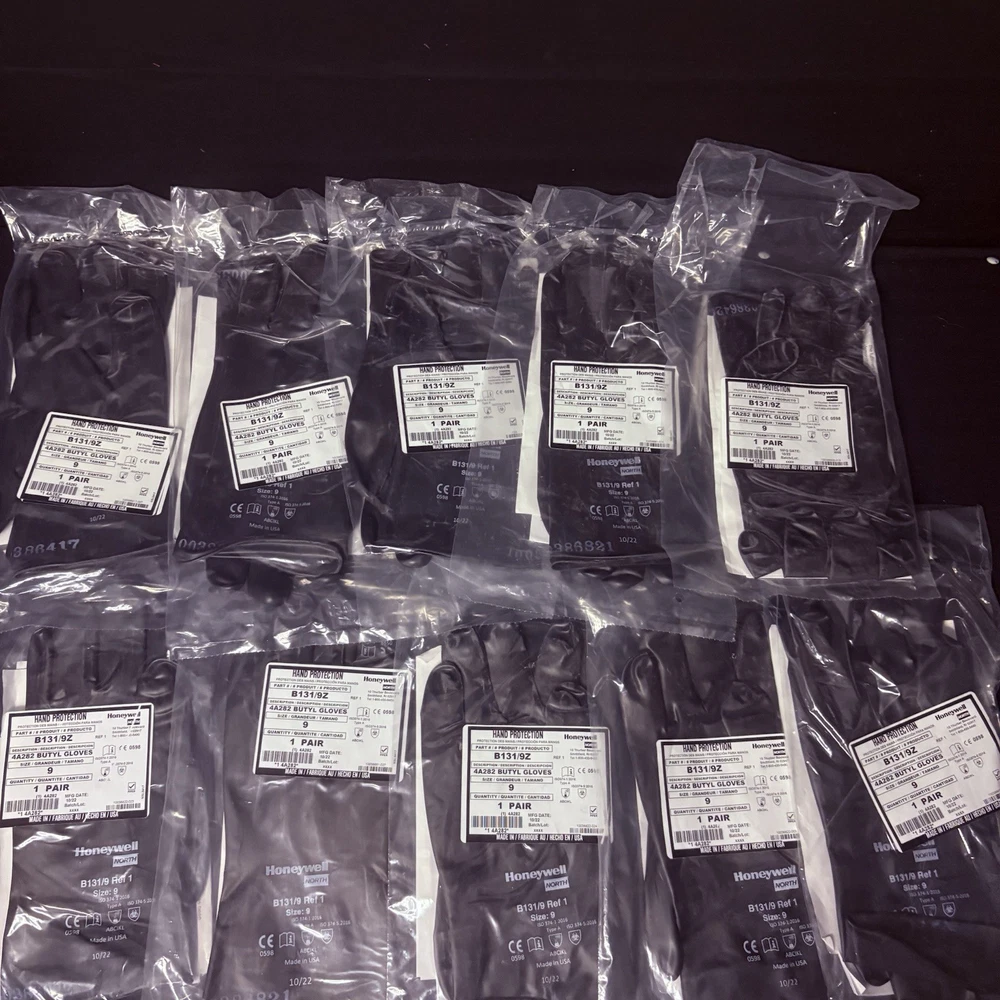 The (10 Pack) Honeywell Butyl Gloves North B131/9 are chemical-resistant work gloves designed for personal protective equipment in industrial settings. Made by North, a brand associated with Honeywell, these gloves are crafted with a durable butyl material that offers excellent protection against chemicals and other hazards. With a size 9 fit and 13 mil thickness, these gloves provide a comfortable and secure fit for extended wear. Ideal for use in various industrial applications, these gloves are a reliable choice for ensuring worker safety and protection.