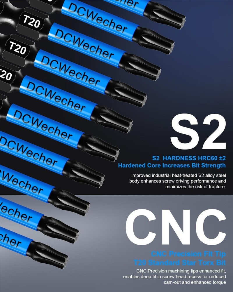 10 Pack T20 Torx Bit 2 Inch Professional-Grade T 20 Torx Screwdriver Bits Tool Size:T20 Torx Bit 10-PCS 2 Inch Item Length: 2 Inches Material: S2 Alloy Steel Drive System: Torx Star Finish Type: Manganese Phosphate T20 STANDARD STAR TORX BIT This 10-Pack of T20 torx bit is 2 inch long, with bit holder. Each drill bit is clearly labeled with its size UPGRADED INDUSTRIAL STRENGTH MATERIAL T20 Torx bit is made of solid S2 steel alloy with a hardness grade of 60 HRC, after exquisite heat treatment process, suitable for standard drill bits or impact drivers Impact t 20 torx bit sufficient magnetic make it easy to lock and remove screws, after repeated use of magnetic does not decay, 1/4" Hex-Shank quick change Impact t-20 torx bit enables deep fit in screw head recess for reduced cam-out and enhanced torque. Effectively avoid breakage 10 Professional-Grade t20 torx bits for installing torx head deck screws, home repairs, furniture assembly, automotive, and various DIY projects. It is an essential addition to your toolbox Return Policy: We offer a 30 day return policy from the receiving date. Please contact us for a Free Return Label. Please use our return label so it will go back to our supplier and we can do a refund or replacement afterwards. Feedback: Your satisfaction is very important to us! If you have any problem with your order, please contact us and we will do our very best to make you satisfied. As long as you are happy with your purchase, please leave a positive feedback for us. We will always leave you a positive feedback in return. If you have any problem with your purchase, please do not leave a negative feedback. Please Contact us ... and your issue will be solved quickly and positively We are a small family-owned business trying to make a living, not a huge company that does not care ... We will ALWAYS do our best for you!