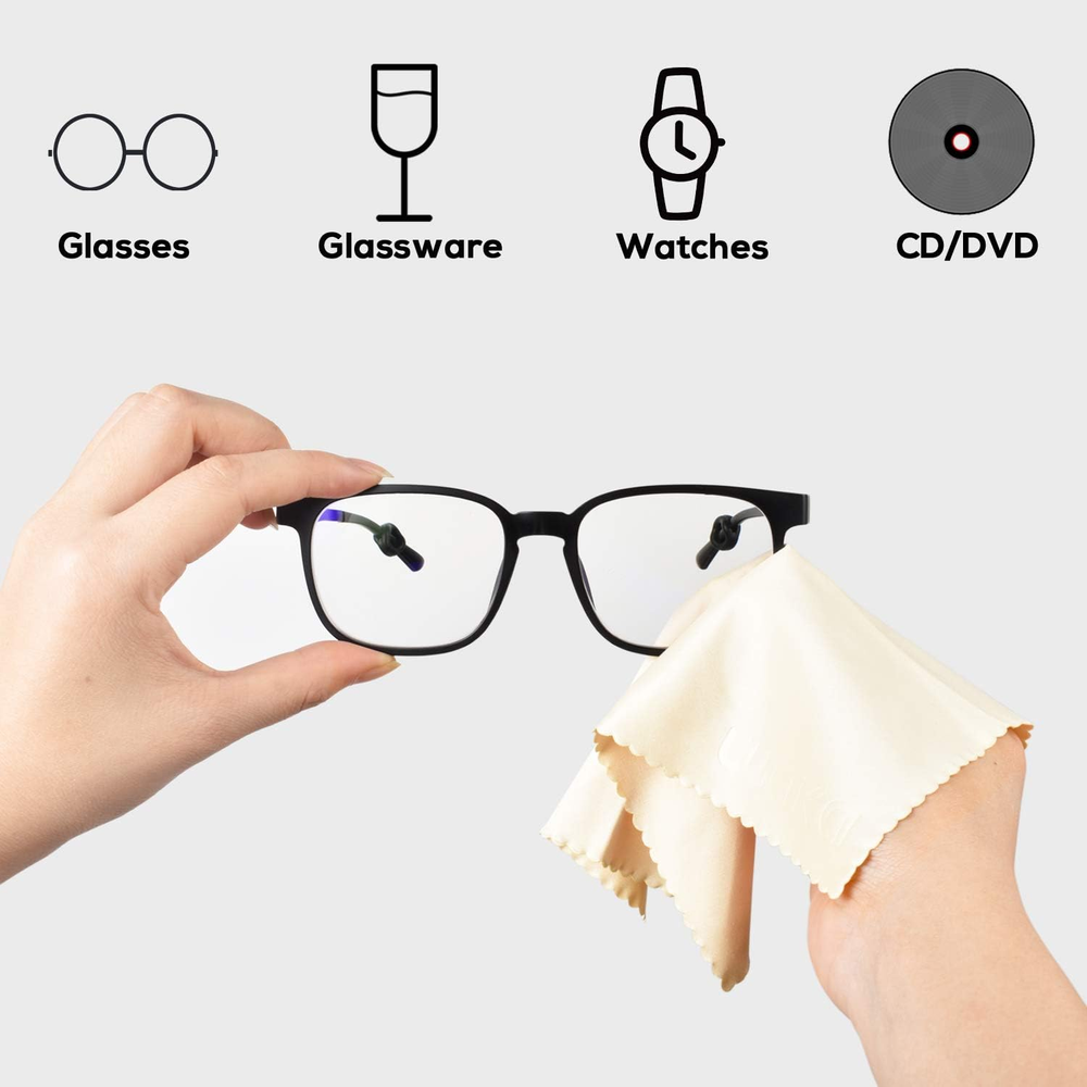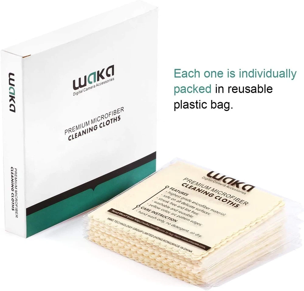 Premium Quality Soft Microfiber Cleaning Cloths: Eyeglass cleaning cloths are made from a high-quality microfiber blend.Composed of 80% polyester and 20% polyamide for greater softness, tight weave and easy brushing. Safe for All Surfaces: Microfibre cleaning cloths with special curved patterned edges won't scratch your expensive eyewear and can be used for glasses, mobile phones, TVs, computer monitors, tablets, laptops, camera lenses, sunglasses or other delicate surfaces. Washable and Reusable: Our new microfiber cleaning cloths are washable and reusable; you do not need to worry about fading and lint. They provide better cleaning results and can be used for a long time. Great value: You will receive set with large size 6x7" of microfiber cleaning cloths,each cleaning wipes is individually packed in its own plastic bag for long term safe keeping. Compact and Portable: Each cloth is individually packaged in a clear, easy to carry in your pocket, purse, eyeglass case, camera bag, and backpack,allowing you to clean dirt, dust, and debris from your device anywhere on the go. Product Description waka Microfiber Cleaning Cloths is made with carefully research and design. We choose premium microfiber that is 200x thinner than human hair, makes the cleaning cloth ultra-gentle, extremely soft and lint free. Beautiful light yellow color makes the dust and dirty more easily to see than black or dark colors. Unique ARC edges instead of general SAW edges to avoid accident scratches on the delicate surface when cleaning. Perfect for cleaning eyeglasses, smart phones, camera lenses, tablets, jewelry, glassware, mirrors or anything you want to keep like new, every day. 10 Pack Premium Microfiber Cleaning Cloths - Lint Free, Extra Thick, Large, Ultra Gentle! 100% Safe for Your Screens and Delicate Surfaces. Package Contains: 6”x7” Microfiber Cleaning Cloths x 10pcs; Features: Ultra-fine microfibers absorb and gently lift away fingerprints, oil smudges, dust, and dirt. Beautiful light yellow color makes dust and dirty on it more easily to be seen than dark colors. Unique ARC edges instead of general SAW edges by other sellers to prevent accident scratching your delicate surface and screens. Lint-free, streak-free and scratch free. 6'' x 7'' size is large for grip and use. Easily to fold and fit in camera bags, eyeglass cases, tablet cases, laptop sleeves. Machine or hand washable. Can be reused for more than 500+ times. Perfect for Cleaning Eyeglasses, Smart Phones, Camera Lenses, Jewelry, Glassware, Mirrors and More! Safe for cleaning screens Ultra gentle and extremely fine lint free microfiber cleaning cloth leaves zero marks or scratches, safe for all delicate surfaces. Chemical cleaner Free Clean your objects faster and better without using chemical cleaners for fingerprints, oil, dirt, dust, and smudges. Ideal as gift Each microfiber cloth is individually and neatly packed in its own polyurethane plastic bag. Great as gift for family, friends and co-workers or for long term storage.