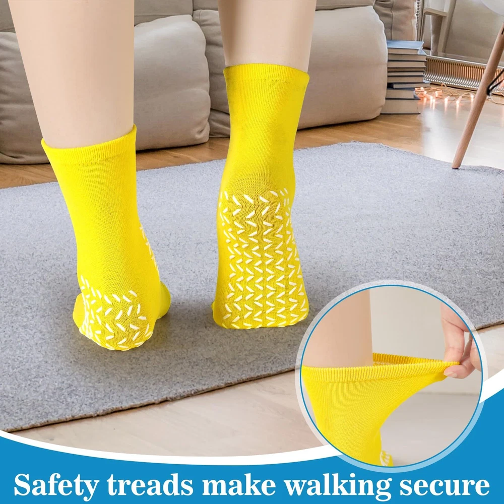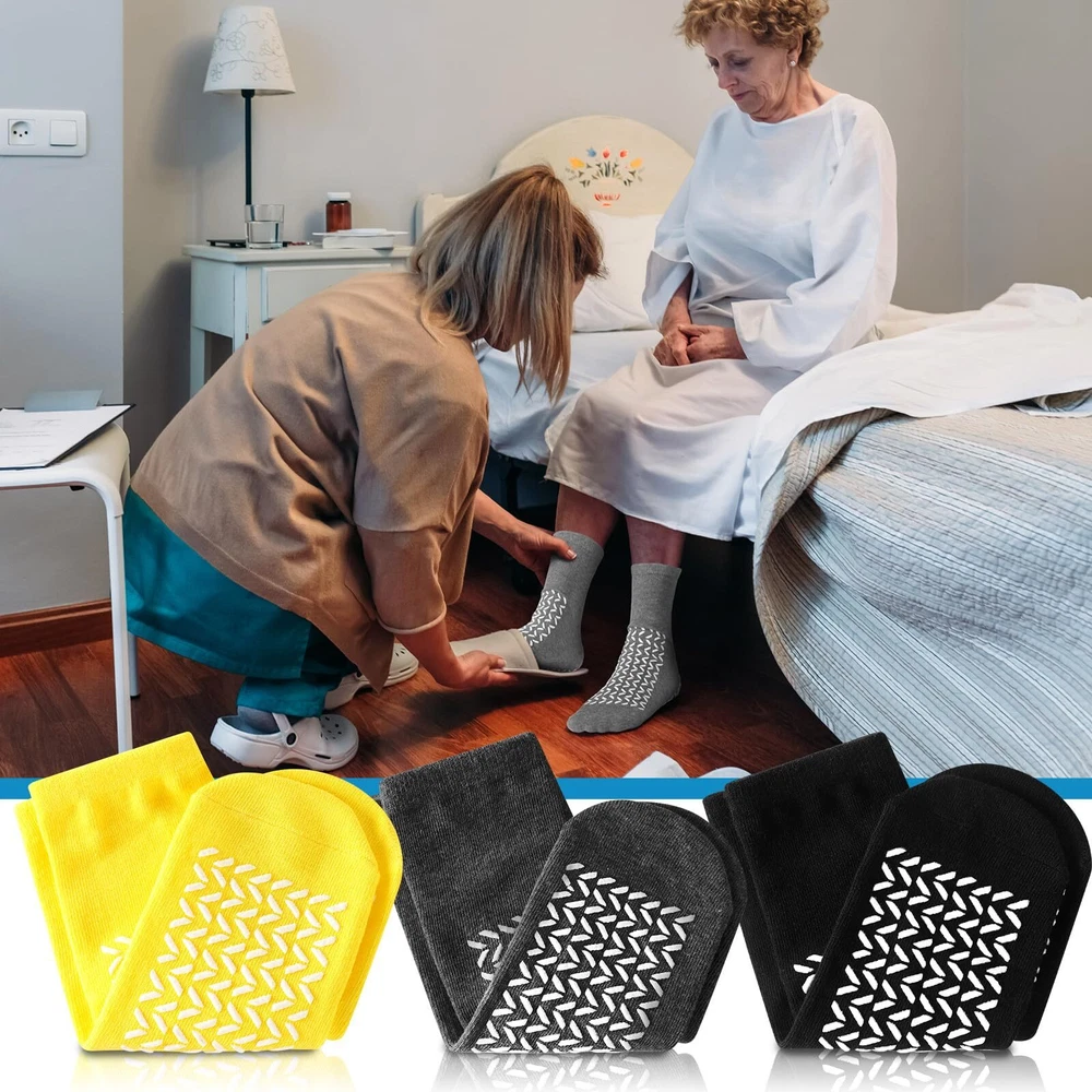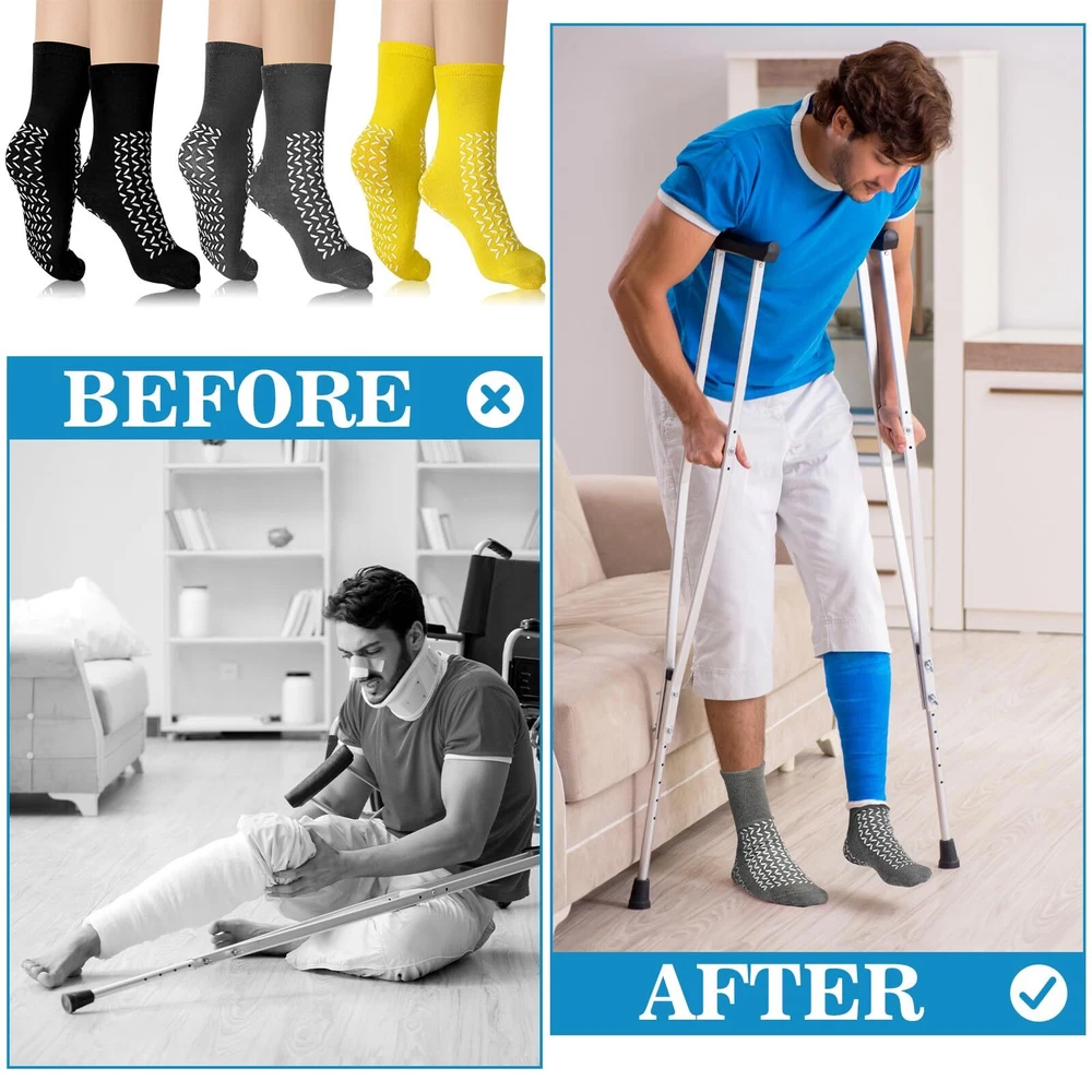 Description Features: These fall prevention socks are lightweight and foldable, and can be carried around without causing a burden on you. These hospital socks aren't just comfortable, they're funny and stylish. Whether you're dressed for a gym workout, work or play, you can wear them to match your outfit. Specifications: Material: polyester Color: as pictures shown Size: medium Quantity: 10 pairs Package includes: 10 Pairs of double sided tread non slip socks Notes: Manual measurement, please allow slight errors on size. The color may exist a slight difference due to different screen displays. Our product is not suitable for sensitive skin. Test whether there is any allergy on a small part of your skin before use. Package Content: you will receive 10 pairs of non skid double sided socks in lots of colors, you will have enough choices to choose, which match your styles and replacements, and you can share them with your friends Slip Stopping Design: these nonslip socks are designed with double sided upper design, which keeps a steady grip, preventing slips and falls; Ideal for a stroll within your house or a workout session, these socks provided nice wearing experience with you Reliable Material: our grip socks for men women are made with quality polyester material, promising the comfort your feet deserve; The fabric is breathable, and designed to keep your feet cool, wicking away moisture and reducing sweat; Enjoy the assurance of wear and tear resistance, making our socks an ideal choice for everyday use Breathable and Comfortable: these non slip socks can quickly absorb sweat, so your feet can remain dry and odorless; In addition, their breathable design ensures that your feet dry and cool, providing the comfort needed for daily use; This feature makes them suitable for sports and other outdoor activities Wide Application: our non skid hospital socks are not only ideal for lounging at home but also suitable for yoga, workout sessions or hospital stays; Their grip and comfortable fabric make them an ideal choice for elderly or pregnant women who need additional balance support