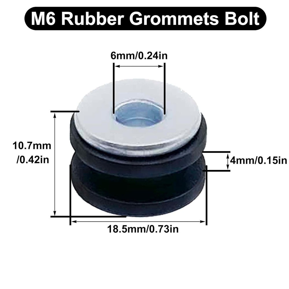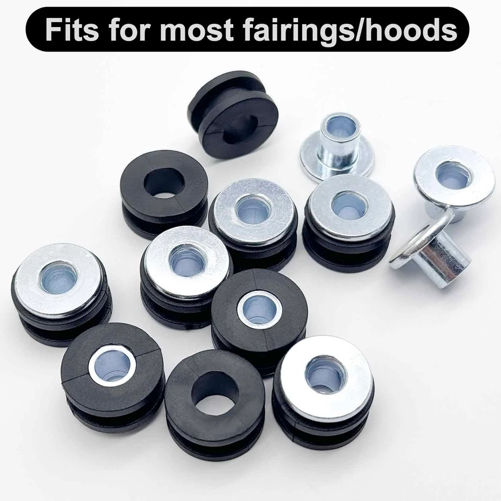 10 Pcs Motorcycle M6 Rubber Grommets Bolt Motorcycle Rubber + Steel Grommet