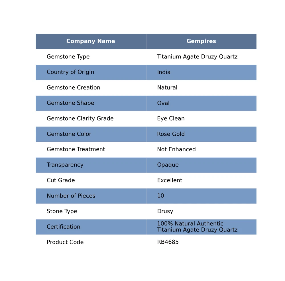 Number of Pieces: 10 Gemstone Shape: Oval Certification: 100% Natural Authentic Titanium Agate Druzy Quartz Transparency: Opaque Vintage: No Cut Grade: Excellent Gemstone Form: Drusy Country/Region of Manufacture: India Gemstone Type: Titanium Agate Druzy Quartz Brand: Handmade Gemstone Creation: Natural Gemstone Color: Rose Gold Country of Origin: India Gemstone Treatment: Not Enhanced Gemstone Clarity Grade: Eye Clean Wholesale: Yes