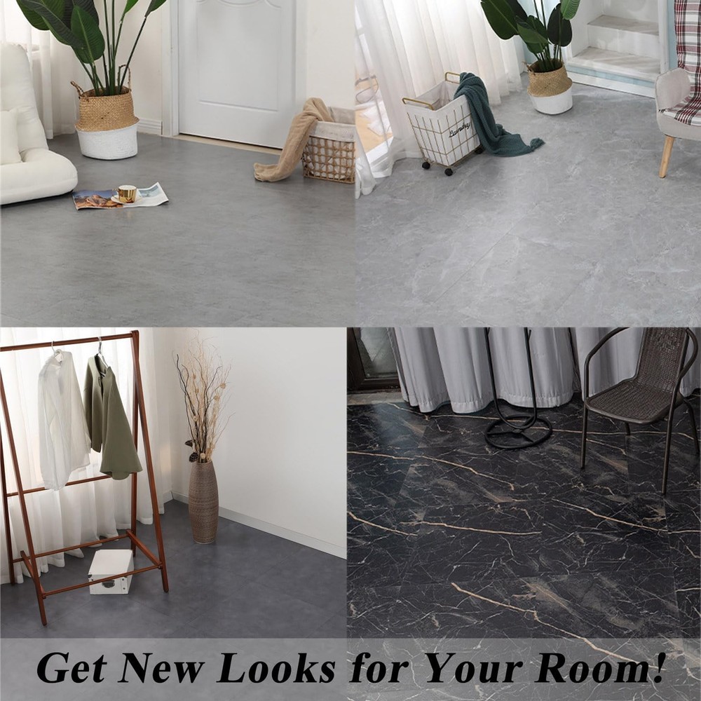 If you are looking for a way to renovate your old floorings at a low cost, vinyl floor tile is your best choice! ๐‹๐ข๐Ÿ๐ž๐ฅ๐ข๐ค๐ž ๐ฆ๐š๐ซ๐›๐ฅ๐ž ๐Ÿ๐ฅ๐จ๐จ๐ซ ๐ฉ๐š๐ญ๐ญ๐ž๐ซ๐ง ๐„๐š๐ฌ๐ฒ ๐ข๐ง๐ฌ๐ญ๐š๐ฅ๐ฅ๐š๐ญ๐ข๐จ๐ง: Just peel and stick on floor. ๐ƒ๐ˆ๐˜ ๐š๐ฌ ๐ฒ๐จ๐ฎ ๐ง๐ž๐ž๐: Light yet sturdy trimmable vinyl floor tiles, cut to fit any place in any shape. ๐„๐š๐ฌ๐ฒ ๐ซ๐ž๐ฆ๐จ๐ฏ๐š๐ฅ: Leave no residue when any removal or replacement is needed. ๐„๐š๐ฌ๐ฒ ๐œ๐ฅ๐ž๐š๐ง๐ข๐ง๐  ๐š๐ง๐ ๐ฆ๐š๐ข๐ง๐ญ๐ž๐ง๐š๐ง๐œ๐ž: Clean the waterproof vinyl flooring with wet cloth or mob. ๐’๐ญ๐š๐›๐ฅ๐ž ๐š๐ง๐ ๐๐ฎ๐ซ๐š๐›๐ฅ๐ž: Waterbased pressure sensitive adhesive ensures stability. Anti-scratch material ensures durability and longevity. ๐Œ๐ฎ๐ฅ๐ญ๐ข๐ฉ๐ฅ๐ž ๐š๐ฉ๐ฉ๐ฅ๐ข๐œ๐š๐›๐ฅ๐ž ๐จ๐œ๐œ๐š๐ฌ๐ข๐จ๐ง๐ฌ: Can be used for kitchen floor, living room flooring, bathroom floor tiles, garage floor, office floor renovation, etc., on surfaces such as cement, old marble flooring, floor paint, terrazzo, heating floor, wood floor etc. We offer a 30-day full-money-back guarantee. Do not hesitate to ask if you have any questions about our floor tiles or installation. We'll try our best to help! ๐๐ซ๐ž๐ฆ๐ข๐ฎ๐ฆ ๐ช๐ฎ๐š๐ฅ๐ข๐ญ๐ฒ: vinyl floor tiles are made of high-quality pvc, which ensure durability and longevity. These floor tiles are sturdy, waterproof, heat-resistant and anti-scratch. The lifelike marble patterns make the vinyl tiles look the same as ceramic floor tiles. ๐„๐š๐ฌ๐ฒ ๐ƒ๐ˆ๐˜ ๐ข๐ง๐ฌ๐ญ๐š๐ฅ๐ฅ๐š๐ญ๐ข๐จ๐ง ๐š๐ง๐ ๐ซ๐ž๐ฆ๐จ๐ฏ๐š๐ฅ: No need to hire professionals to install the floor tiles. made the tiles peel and stick floor tiles, and the vinyl tiles are trimmable to meet any DIY need. Even a lady can easily renovate her flooring with these peel and stick vinyl floor tiles. If any replacement or removal is needed, the vinyl floor tiles can be removed without leaving residue. ๐„๐Ÿ๐Ÿ๐จ๐ซ๐ญ๐ฅ๐ž๐ฌ๐ฌ ๐ญ๐จ ๐œ๐ฅ๐ž๐š๐ง: You can clean the waterproof peel and stick vinyl tiles the same way as cleaning traditional marble floor tiles. The vinyl tiles that adhere to the floor tightly are waterproof and not easy to get dirty. You don't have to worry about laborious cleaning. ๐–๐ข๐๐ž๐ฅ๐ฒ ๐š๐ฉ๐ฉ๐ฅ๐ข๐œ๐š๐›๐ฅ๐ž: These peel and stick vinyl floor tiles are ideal laminate or linoleum floor replacements. The vinyl flooring tiles can stick on any flat and clean surface, such as cement, old marble flooring, floor paint, terrazzo, heating floor, wood floor, etc., in living rooms, bedrooms, kitchens, bathrooms, office, garage, and more. ๐’๐ข๐ณ๐ž ๐š๐ง๐ ๐ฉ๐š๐œ๐ค๐š๐ ๐ž: The size of each floor tile is 12x12 inch (30.48x30.48cm), and the thickness is 0.06 inch (1.5mm). Each pack includes 10 vinyl tiles, covering a total area of 10 square feet (0.93 square meter).