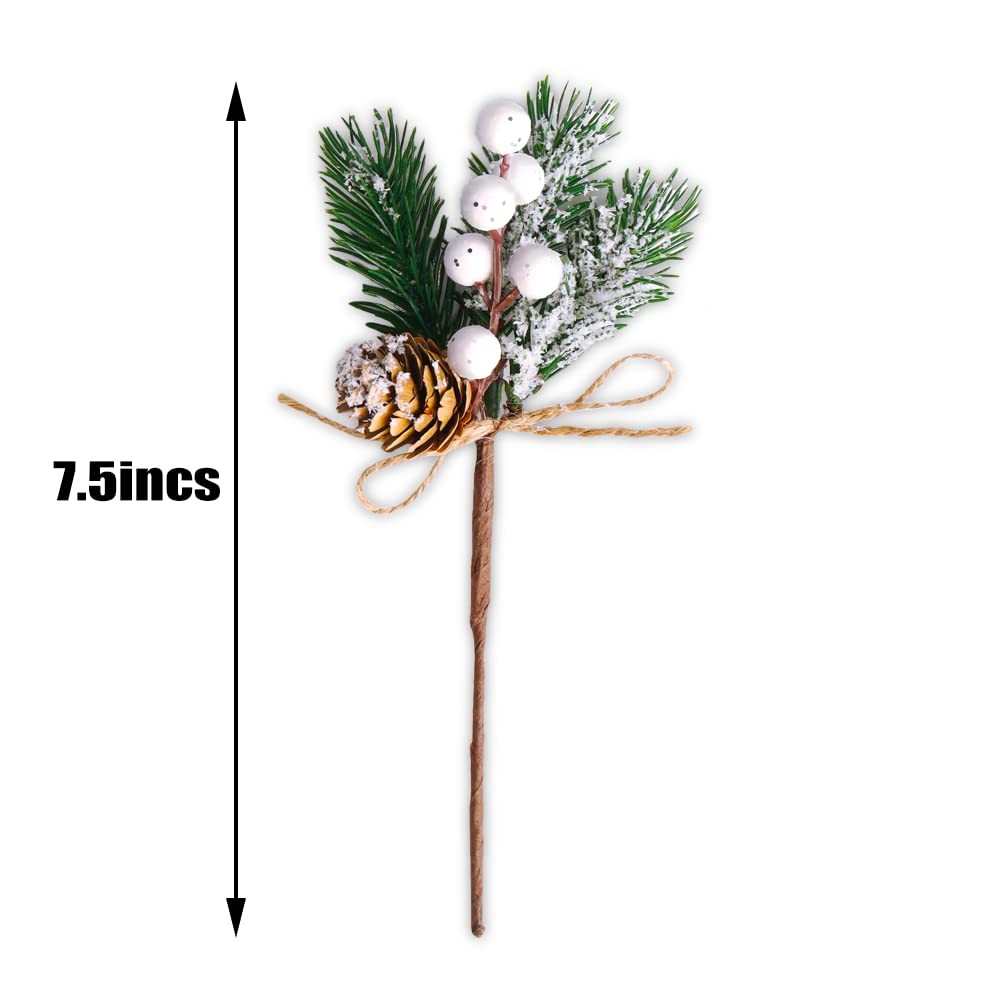 10 PCS Natural Rustic Christmas Picks:each pine branches has many full holly berries for crafts,artificial evergreen branches,mini pine cones and red berries.christmas picks and sprays is realistic & natural looking! 10 PCS Floral Picks:Each artificial pine branches has many red berry stems for crafts,mini pinecones for crafts.Christmas picks and sprays is realistic & natural looking! White Berry Wreath Supplies Dimensions:The artificial floral picks size is about stem 8 inch tall / long,red berry stems and pine cones for wreath diy. Holiday Decorations Accessories:Christmas tree picks are suitable for Christmas decor,gift wrap embellishment, Mother's day decoration,holiday floral arrangements,garland accessories,wedding&party decoration. Artificial picks for crafts set are made of high-quality materials and exquisite craftsmanship. We make sure the wreath making supplies is easy to use, looks realistic and vivid,elegant and beautiful, sturdy and durable. We want to provide our customers with nothing less than the best.If you have any questions about our floral picks or service, We will try our best to solve your problem.