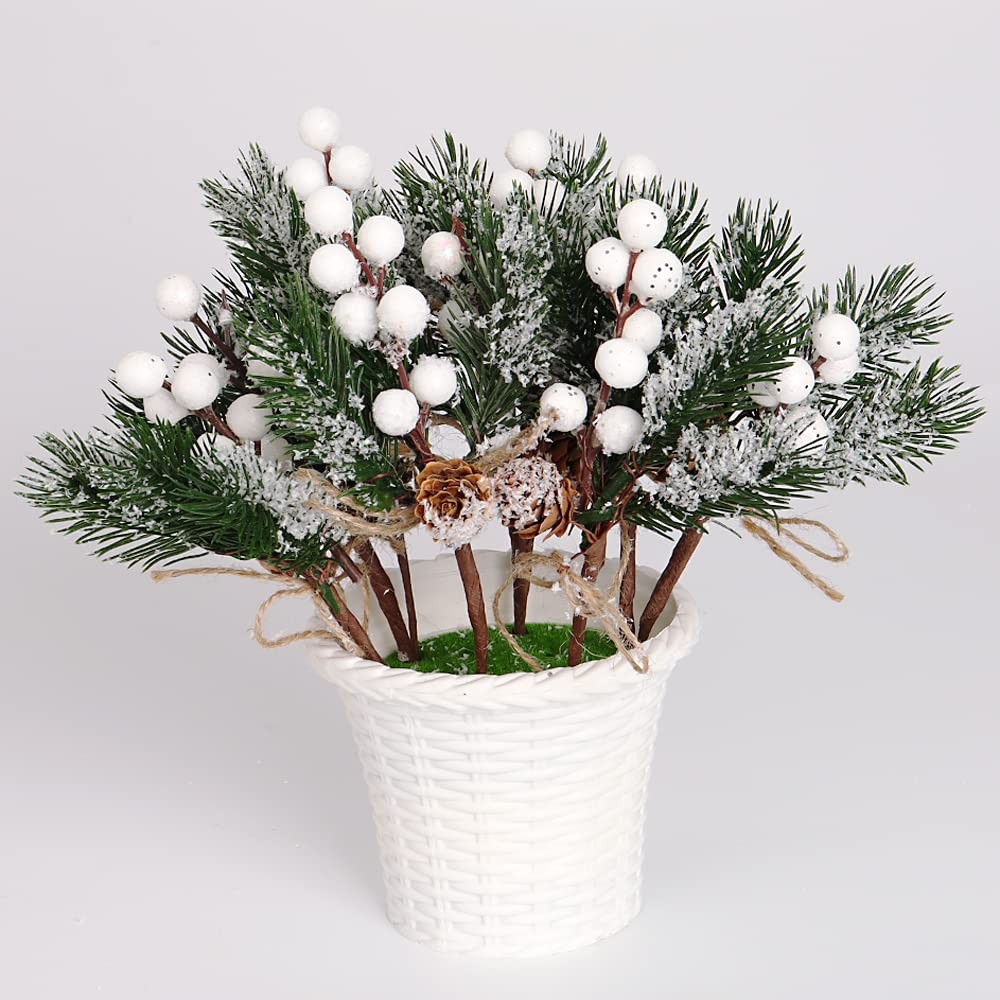 $ 10.7760Pcs Christmas Artificial Branches Fake Plant Pine Needles Red Berry Wreath
