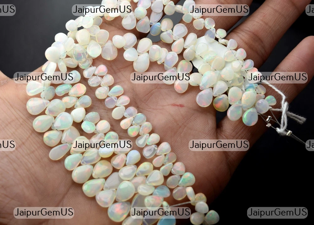 10 Pieces Beads, Super Finest Quality, 100% Natural Ethiopian Opal Gemstones Smooth Pear Shape Beads, Size-6.00-7.00mm Approx (Opal-111) . Pieces ------------10 Pieces Beads Size----------------6.00-7.00 mm Approx. Shape-------------Pear Shape. Brand--------------JaipurGemUs Cut Grade---------AAA+ 100% Natural Ethiopian Opal Gemstones . Super Finest Quality