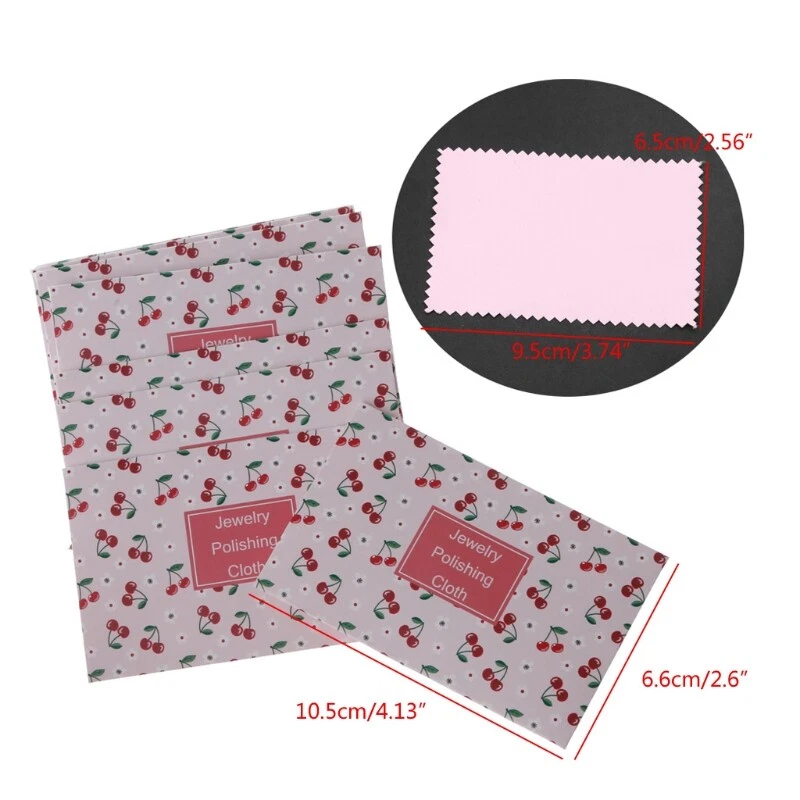 10Pcs Cherry Double-Sided Polishing Cloths Jewelry for Gold Silver and Jewelry Watch Cloth Feature: Polishing cloth that cleans, shines and protects your gold, silver and jewelry. The inner cloth is treated with non-toxic agents as the best and safe way for silver, gold and It is a tarnish remover that restores new tarnishing and giving the jewelry a layer of for soft Microfiber flannel. Small pieces of jewelry are also handled better with the Polishing Cloth. It is very useful to carry when traveling and also at home. Item Type : Jewelry Polishing Cloths Designs Cherry Microfiber Fabric Color:White Size: 9.5 x 6.5 for cm/3.8"x 2.4" Quantity:10 Pcs. Note: Size for manual measurement, there may be a 0 to 2 for cm error, belongs to the normal phenomenon. And due to the difference between different monitors, the picture may not reflect the actual color of the item. Thank you! Package includes:(with retail) 10 Pcs x Polishing Cloth.