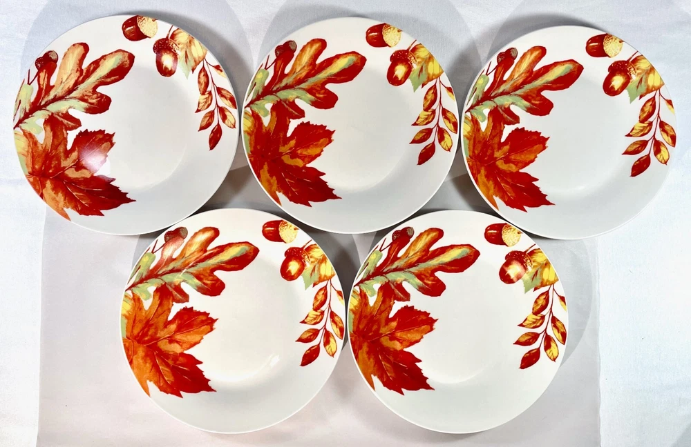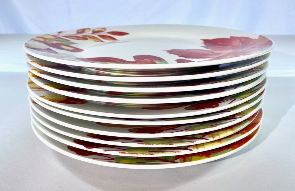 Set (10) Royal Norfolk Fall / Autumn Leaves & Acorns, Thanksgiving Dinner Plates Super nice larger set of lovely Royal Norfolk plates from an Estate in the Pacific Northwest. Enough plates for a large family gathering and then some! Fast shipping just in time for the holidays!! ๐๐ SELLER NOTES: Excellent Condition - Near new looking with very light wear. No chips or cracks. Really nice! See photos and use zoom. Elevate your Thanksgiving table with this Royal Norfolk 10-piece dinner plate set, featuring a charming fall leaves and acorns pattern. Each plate measures 10 1/2" wide, perfectly sized for your festive meals. The rich blend of red, orange, yellow, green, and white hues brings the essence of autumn to your home, making every dining experience a harvest-inspired celebration. Crafted from high-quality ceramic, these plates boast a glossy finish that enhances the intricate design and ensures durability. Whether you're hosting a dinner party or enjoying a family feast, these plates are sure to impress your guests and add a touch of traditional elegance to your table setting. Our goals are to provide excellent service, represent items accurately, and ensure smooth transactions. Please review photos closely and use zoom before purchasing. Message us anytime and we'll get back ASAP. We pack and ship with an abundance of care. SHIPS FAST VIA INSURED USPS usually same business day and at least within one business day. Thanks for looking! rtg