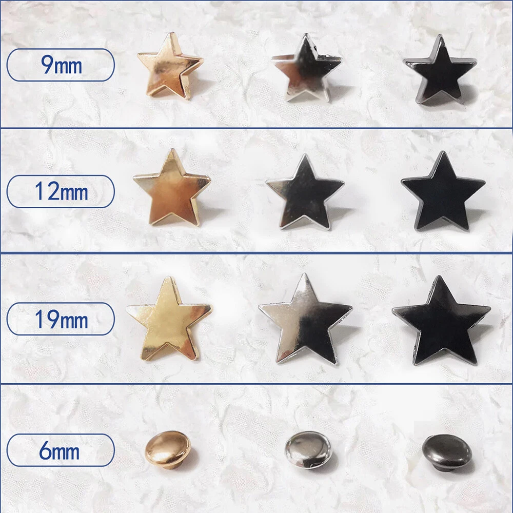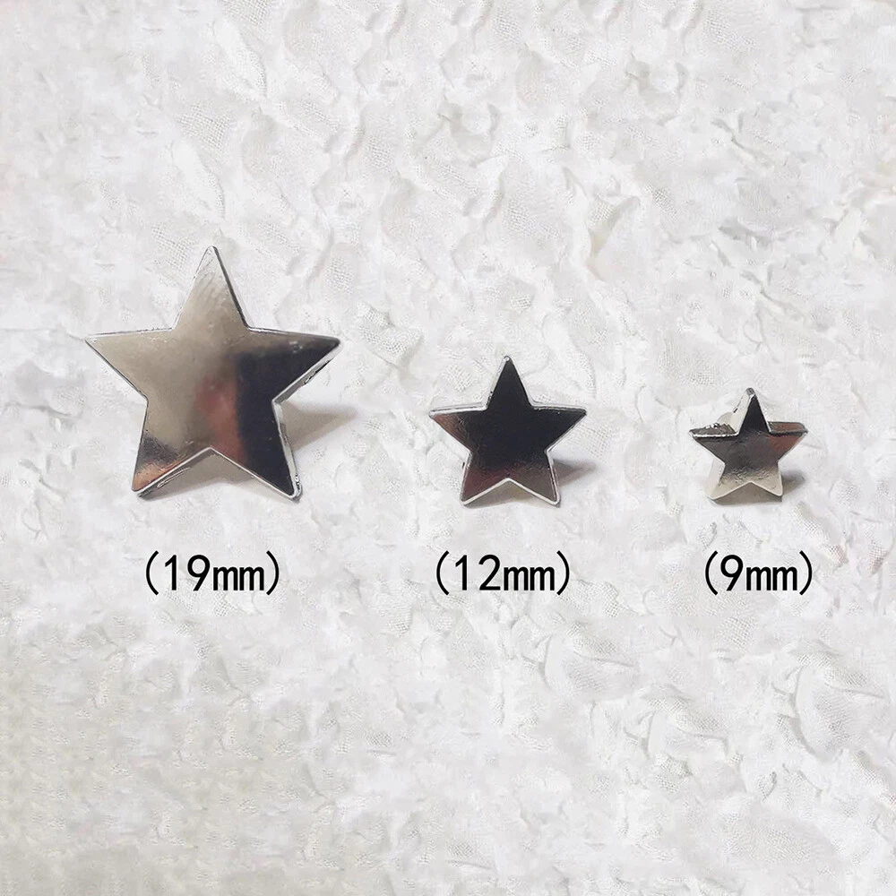 10 Set Metal Star Pentagram Stud Rivet for Leather Craft Bags Shoes Belt Alloy Features: 100% new brand and high quality Use: leather craft, mounting on your favorite belt, Bag strap, keychain, etc. Material:Alloy, Iron Color: As picture shown Size :Diagonal diameter 9mm/12mm/19mm Anti-rust and anti-corrosion Qty:10PCS Package List: NOTE: 1.Please allow slight deviation for the measurement. 2.Due to the light and screen difference, the item's color may be slightly different from the pictures,thanks for understanding.