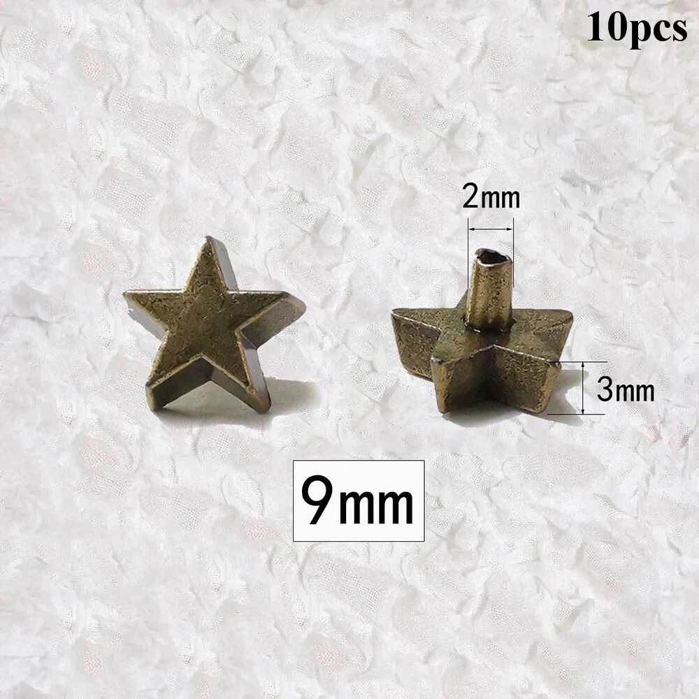 10 Set Metal Star Pentagram Stud Rivet for Leather Craft Bags Shoes Belt Simple
