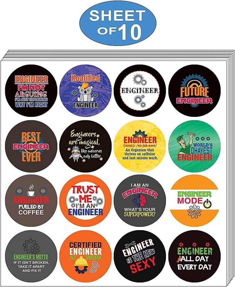 16 UNIQUE DESIGNS INSPIRING STICKERS FOR YOUR DIY PERSONALIZED DECORATIONS - I am an Engineer Stickers (10-Sheets x 16 Designs). These colorful and uniquely inspiring round shaped stickers are the best tool for DIY decoration and personalization of your belongings. GREAT STOCKING STUFFERS, TEACHING SUPPLEMENTARY MATERIALS, AND GIVEAWAY - Great stocking stuffers gifts for Engineers, Professionals, Co-workers, Men Women Adult. A perfect design to give during guidance sessions, classroom activities, school giveaways, birthdays, anniversaries, family day, and any other special occasions. MADE WITH DURABLE AND WATERPROOF MATERIALS - There is a lamination or coating to make the stickers high water resistant, and WILL NOT fade from the water. The stickers can stick it anywhere you like, and it sticks there and lasts a long time. A COLORFUL AND DECOR STICKER DECAL - Each sheet with 16 individual round stickers. There are 10 Sheets, with a total of 160 pieces of stickers. STICKER SIZE: 1.5 INCHES IN DIAMETER I am an Engineer Stickers (5-Sets X 6 Cards) COLORFUL AND COLLECTION OF TEXT STICKERS • Well designed. • Very encouraging. • Self-adhesive. I am an Engineer Stickers (5-Sets X 6 Cards) are super fun to collect; you can't have just one! That's why you will find a selection of stickers right here. Each package comes with different stickers in a variety of designs. Stick them here, stick them there, stick them everywhere! Everyone will love these self-adhesive stickers. These colorful stickers are perfect for any adults and these come with very inspiring messages and bright pictures. A fun, inexpensive way to add a decorative, notes, and stationery. Delight yourself with uplifting messages designs that are very encouraging. I am an Engineer Stickers (5-Sets X 6 Cards) perfect for giveaways, behavior incentives, prizes! These stickers are acid-free, nontoxic, and safe for use on photos. This product comes with a 60 days money back guarantee. You can return them to us for a full refund.