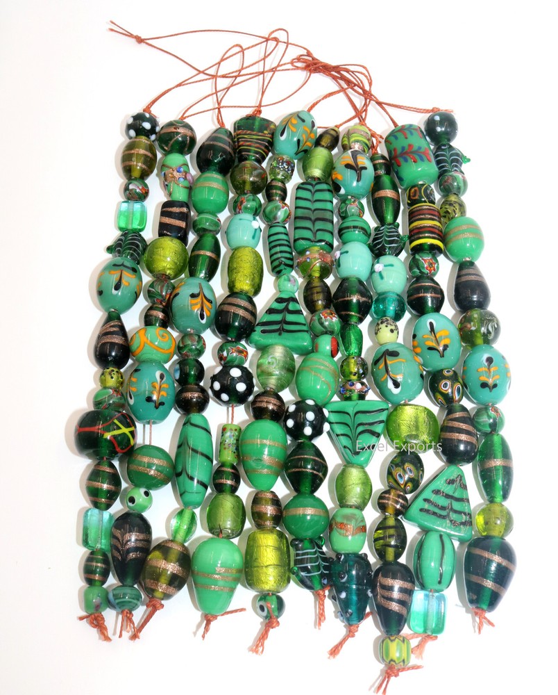 Product Details: Handmade Lamp Work Glass Beads. Multi Shape and Sizes Strand Length: 8 inches Color: Green Combination Quantity: 10 Strand Pack (Approximately 125 Beads) Condition: New Use: Decoration and Jewelry making like Necklace, Bracelets, Earrings etc. SHIPPING We arrange hassle free shipping and the couriers will give you door delivery. A tracking number will provide immediately after dispatch. CONTACT US For any further information, kindly contact us. We will be happy to assist you. THANK YOU FOR YOUR CO-OPERATION AND SUPPORT