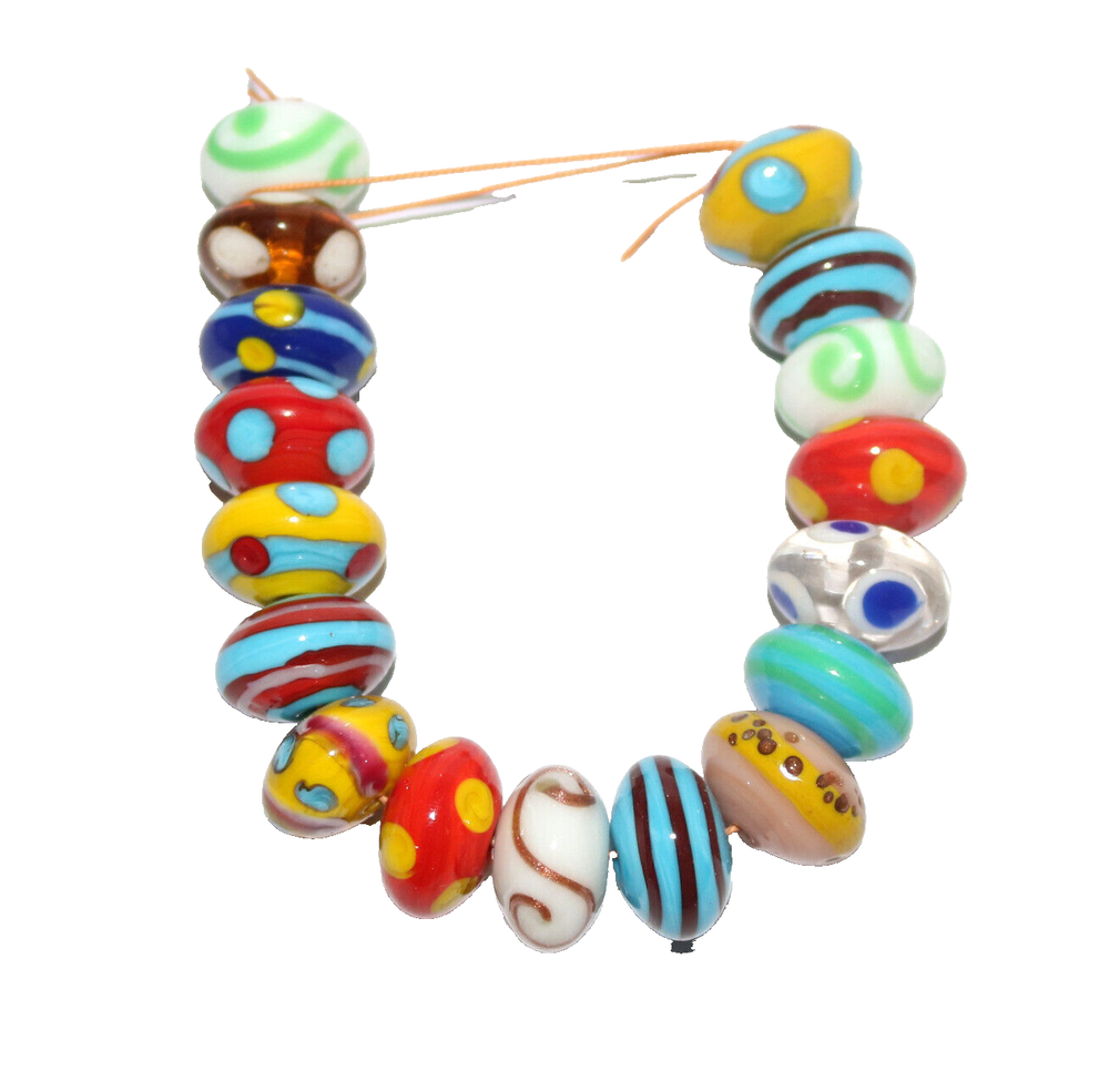 Product Details: Lamp Work Glass Beads. Bead Size: 10 x 18mm Disc Strand Length: 8 inches Color: Multi-Color Quantity: 10 Strand Pack (170 Beads) Condition: New Use: Decoration and Jewelry making like Necklace, Bracelets, Earrings etc. SHIPPING We arrange hassle free shipping and the couriers will give you door delivery. CONTACT US For any further information, kindly contact us. We will be happy to assist you. THANK YOU FOR YOUR CO-OPERATION AND SUPPORT