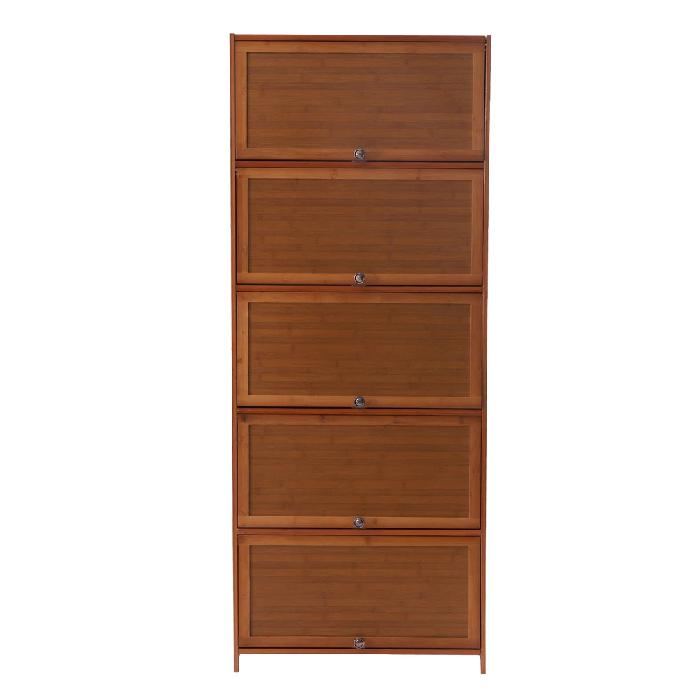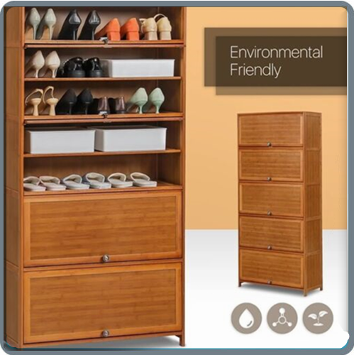Specification Material: Nan Bamboo and Laminate Finish: Varnished Color: Brown Doors Included: Yes Shoes Capacity: 30 Pairs Assembly Required: Yes Mount Type: Floor Mount Shape: Rectanglar Packing Size: 181*36.2*16.5cm/71.25*14.25*6.49in Each Tier Height: 15cm/5.91in Product Size: 70*32*172cm/27.58*12.60*67.72in Gross Weight: 18kg/39.68lbs Net Weight: 17kg/37.47lbs Bearing Weight of Each Tier: 20kg/22lbs Package Included 1 x Shoe Cabinet 1 x Chinese User Manual All Accessories for Installation WELCOME 10-Tier Bamboo Shoe Rack Cabinet Wooden Shelf Stand Storage Book Shelf Organizer How to assmeble? Remember to override the side of the door suction with the iron plate 1. Remove the door suction laminate and the small screws for the door suction 2. Fix the door suction laminate to the side brackets with the large screws 3. Take out the back plate and insert it along the groove of the bracket. Remember to insert the metal strip into the hole, not into the groove Do not screw the front screws yet 4. Remove the door suction laminate and the back panel in turn 5. Take out the top laminate and the inner door laminate and install them with large screws 6. Remove the metal strip and insert it into the side brackets in turn. Door puller, door spacer with medium screws The metal strips are inserted into the recesses of the brackets As the screws are not screwed in step 5, the side brackets can be gently broken open Insert the metal strips into both ends of the door 7. Remove the door panel, door gasket, door pull ring and metal tabs and install them as shown in the picture 8. Break off the side brackets to the right, then snap the door panel into the brackets 9. Install the remaining door panels in sequence and tighten the screws. 1.Description Are you still troubled by the messy entryway? Are you still looking for a suitable entryway shoe rack? This shoe cabinet can not only give you a neat door but also meet your shoes storage needs. Its fully enclosed design protects against dust and moisture, while you can open the door to ventilate and disperse the smell, giving your shoes a dry, clean storage environment. It will be the ideal choice for you! Specification Material: Nan Bamboo and Laminate Finish: Varnished Color: Brown Doors Included: Yes Shoes Capacity: 30 Pairs Assembly Required: Yes Mount Type: Floor Mount Shape: Rectanglar Packing Size: 181*36.2*16.5cm/71.25*14.25*6.49in Each Tier Height: 15cm/5.91in Product Size: 70*32*172cm/27.58*12.60*67.72in Gross Weight: 18kg/39.68lbs Net Weight: 17kg/37.47lbs Bearing Weight of Each Tier: 20kg/22lbs 2.Package Included 1 x Shoe Cabinet 1 x Chinese User Manual All Accessories for Installation 3.Key Features High Good Material made of high-quality Natural Nan bamboo and laminate with a varnished surface, which is sturdy and waterproof to ensure a long service life Top Surface Platform can be used to place bags, keys, umbrellas, and other personal items , and you can also place some ornaments to decorate this shoe rack, which is pleasing to the eye Water-Resistant The smooth, waterproof surface makes it easy to clean. You can easily wipe off dust and stains with a damp rag. Durable Handle with a sophisticated rounded handle that fits comfortably in your hand and allows you to open and close the door with ease. Push-in Invisible has a concealed sliding design that slides up and pushes into the top for storage, so it won't take up external space. In addition, the magnetic iron tabs attach the doors more securely High Load-bearing Capacity The solid construction and thicker laminate ensure a strong load capacity of up to 20kg/44lbs per tier to meet your daily needs. Large Capacity: This 10-tier shoe cabinet can hold up to 3 pairs of adult shoes per tier, providing enough storage space to keep family members' shoes organized, and free from cluttering up the entryway for a cleaner and tidier room. All-around Protection: The back-sealed composite baffle will provide all-around protection for your shoes to avoid dust or being moistured. High-quality Material: It is made of high-quality Nan bamboo and laminate with a varnished surface, which is sturdy and waterproof to ensure a long service life. The natural bamboo is very healthy and environmentally friendly, which will not emit harmful gases or substances and makes it more secure for your family to use. Tiered Storage: Its multi-tiered design makes it easy to sort and store your shoes, either by type or by the owner, for easy selection and access. The intermediate laminates are also freely removable according to your needs, enabling the storage of tall boots or high heels. Versatile Decoration: The overall design of this shoe cabinet is simple and the color is vintage brown. Whether it is placed at the door or in the living room, it is very harmonious and brings a warm atmosphere to your space. Extra Storage Platform: The top platform can be used to place bags, keys, umbrellas, and other personal items, and you can also place some ornaments to decorate this shoe rack, which is pleasing to the eye. Easy to Assemble: The package includes installation instructions and the required accessories for your convenience. You can enjoy the pleasure of assembling it. Stable Placement: The wider tier plate provides better accommodation for larger sizes of shoes. At the same time, the raised strips on the front edge of the tier help to keep shoes securely in place and prevent them from falling out. High Load-bearing Capacity: The solid construction and thicker laminate ensure a strong load capacity of up to 20kg/44lbs per tier to meet your daily needs. Space Saving : This shoe cabinet makes full use of the vertical space and occupies a small area(27.58*12.60in), so it can be placed in every corner of the home without taking up too much space. Easy to Clean: The smooth, waterproof surface makes it easy to clean. You can easily wipe off dust and stains with a damp rag. 4.Details Raised Legs: The raised leg avoids direct contac