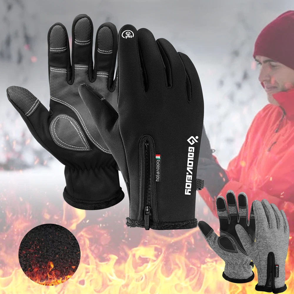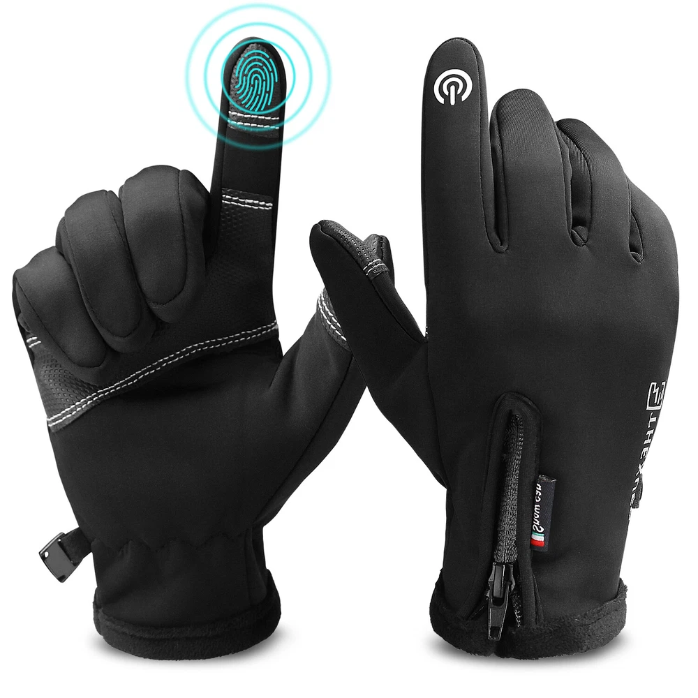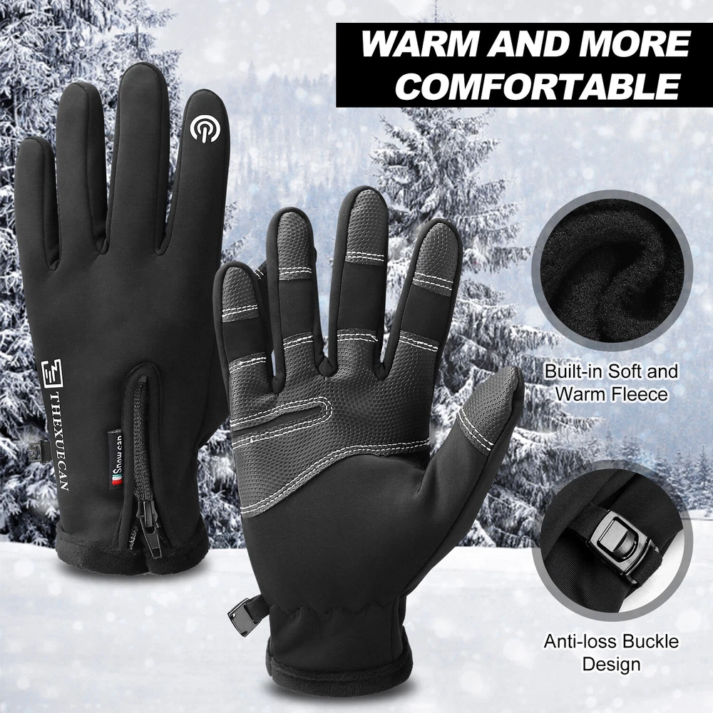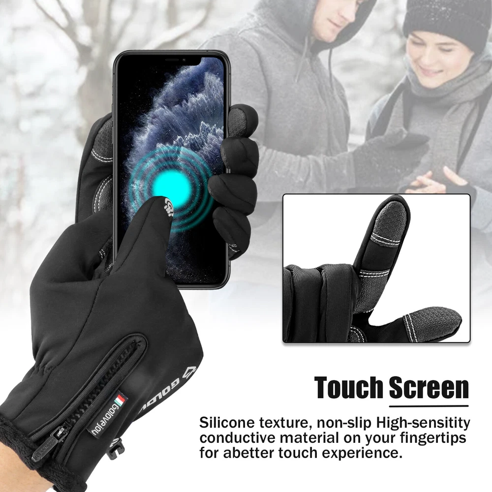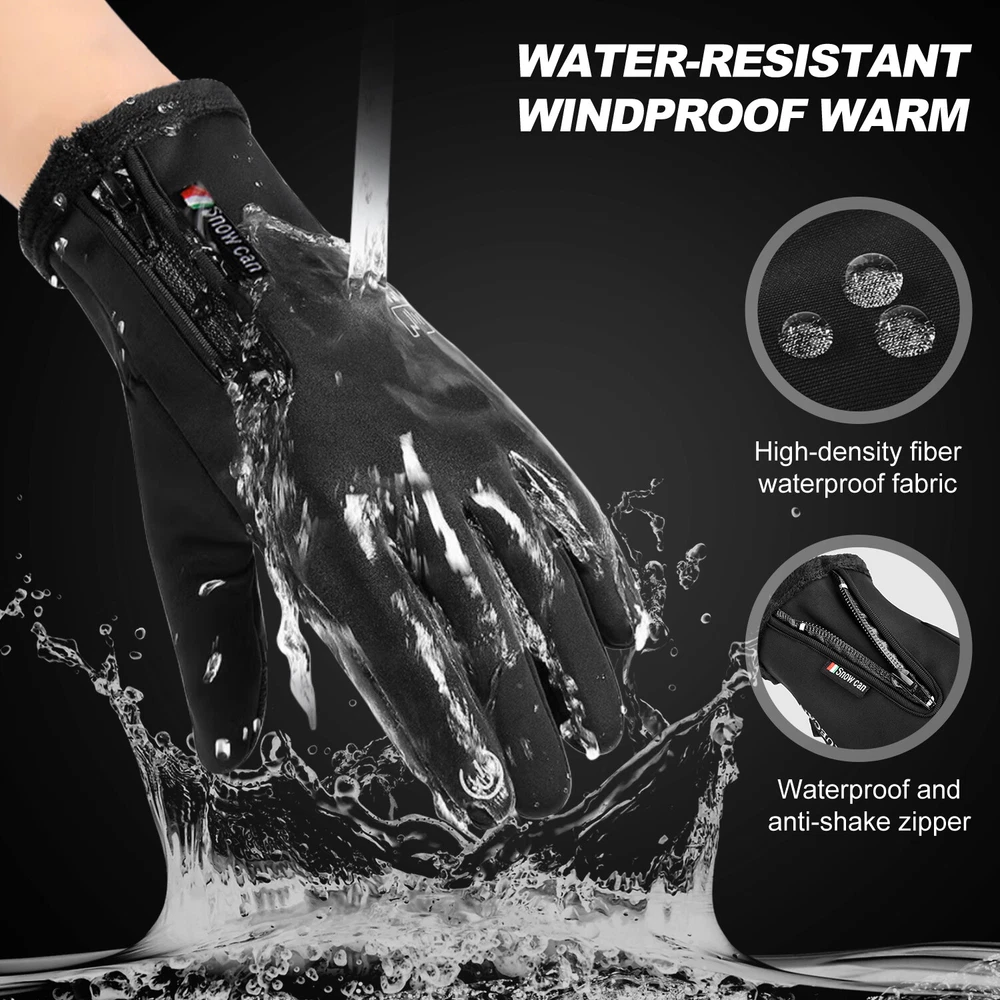 -10℃ Waterproof Winter Warm Ski Gloves Thermal Touch Screen Motorcycle Snowboard Decription: Our products are made of woolen windproof fabric for added warmth and comfort. Adjustable zipper for different size hands and easily take off gloves.Touch the screen with full-fingered PU gloves, more sensitive and no harm.s. This pair of gloves is worth having,In this winter. Size: Size S M L XL XXL Palm Width 2.76-2.95in 2.95-3.15in 3.15-3.54in 3.54-3.94in 3.94-4.72in Palm Circumference 6.69-7.08in 7.08-7.48in 7.48-7.87in 8.26-8.66in 8.66-9.49in Feature: [ Keep Hands Warm & Comfortable] Combined with the warm and soft polar fleece lining and stretchy cuff, these winter gloves not only lock the temperature on your hands and reduce the heat loss, but also absorb moisture and sweat. Say goodbye to the clamminess, your hands will always warm and dry while wearing these warm gloves. [Excellent Waterproof & Windproof ] with high-density waterproof membrane on the surface layer, these cold weather gloves for men can keep your hands dry and warm against melting snow or drizzle. No longer to endure the cold wind or wet to take the heat away in your winter daily activities. [Sensitive Touchscreen & Safety Anti-Slip Silicone] These women running gloves adopted with high-sensitivity conductive material on the thumb and index, help to control all your smart devices conveniently with gloves on. Coated with high-quality silicone on palms and fingers for enhanced friction and grip. Contribute to a higher efficient on daily work. [Flexible & Lightweight ] Unique 3D tailoring and high-stretchy Lycra greatly improve the flexibility and comfort of wearing. These snow driving gloves will fit your hands perfectly like your second skin. So that flexible enough to enhance movement for all the activities. Lightweight and sleek design allow you to take them easily wherever you go. Please Note:Water Resistance (Not Waterproof),gloves should not be immersed in water for long periods of time. Package Included: 1 pair Waterproof Windproof Sensitive five-finger touch screen gloves. Contact us: If you have any questions, please feel free to contact us to resolve the issue before opening a case or Negative, Thanks a lot!