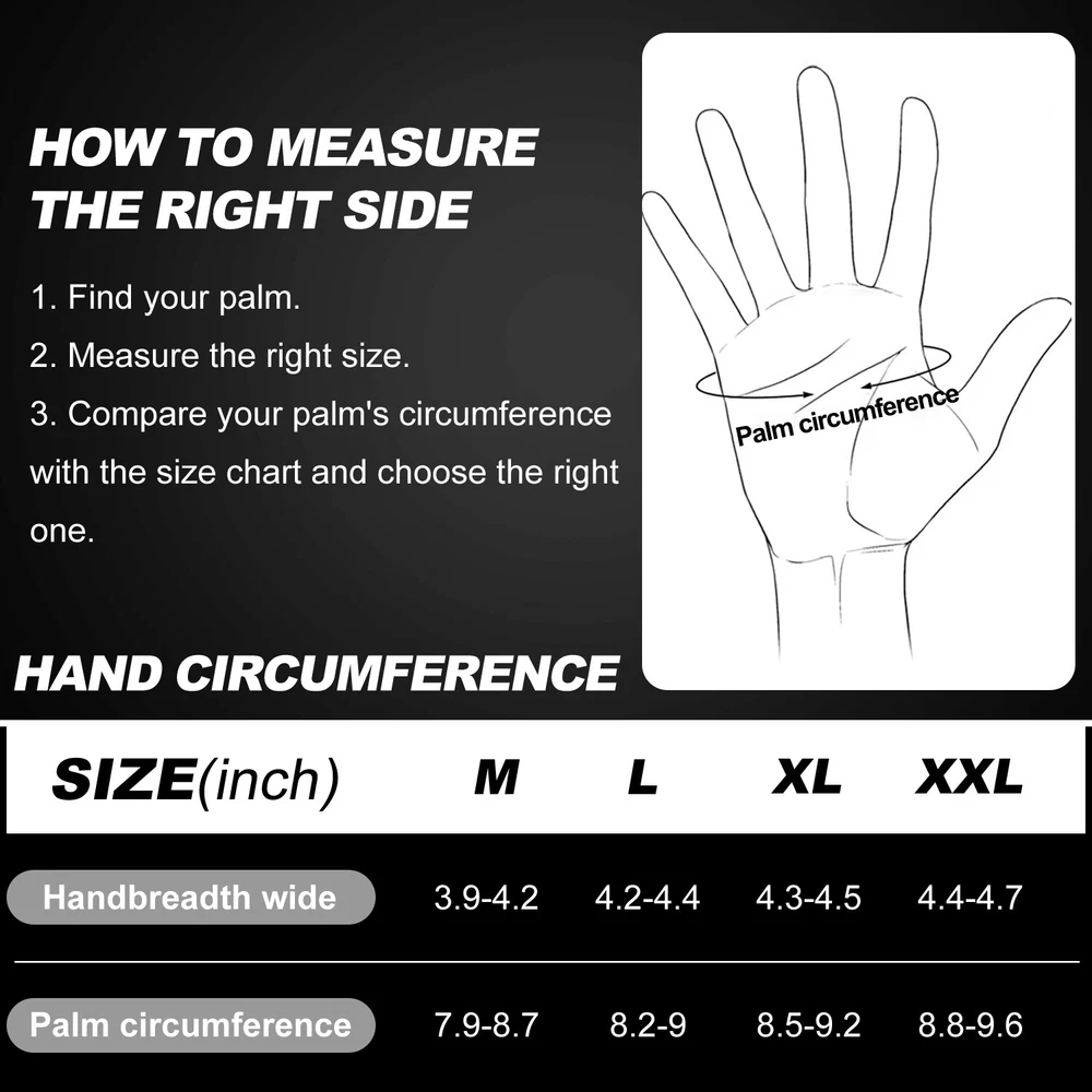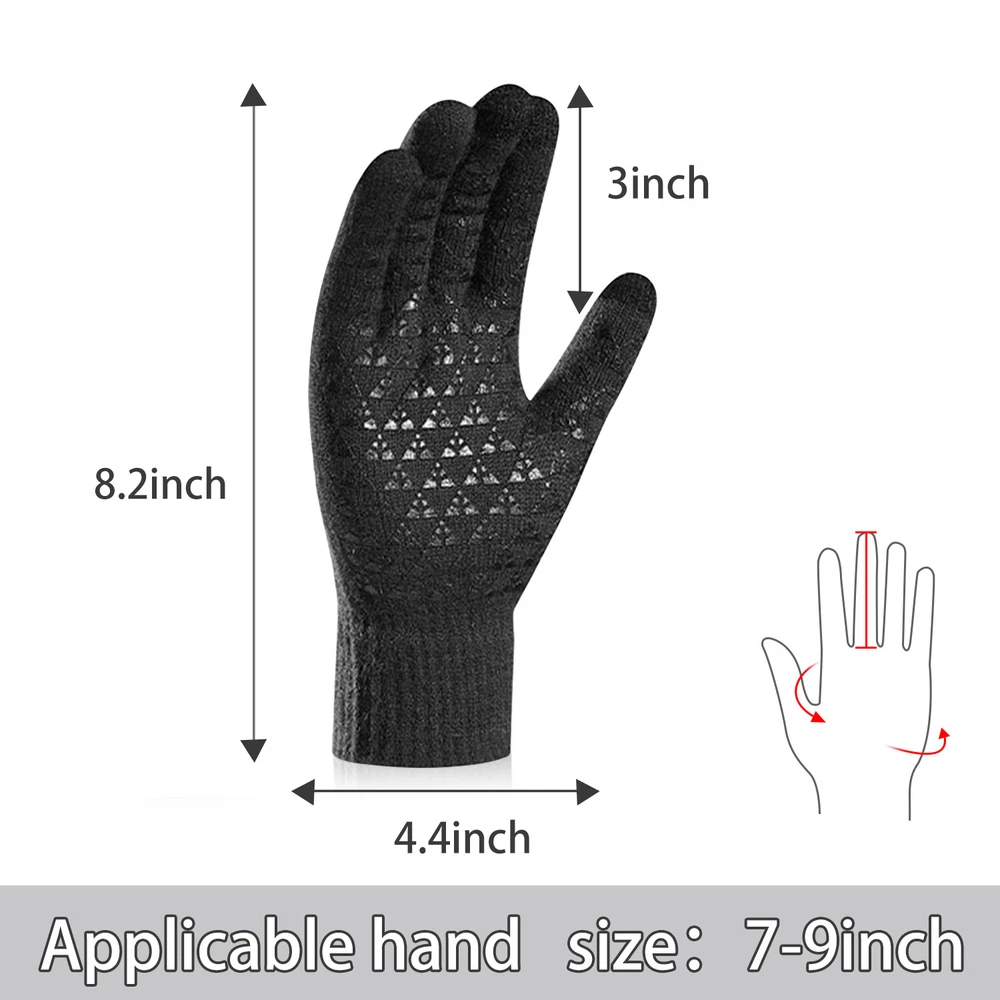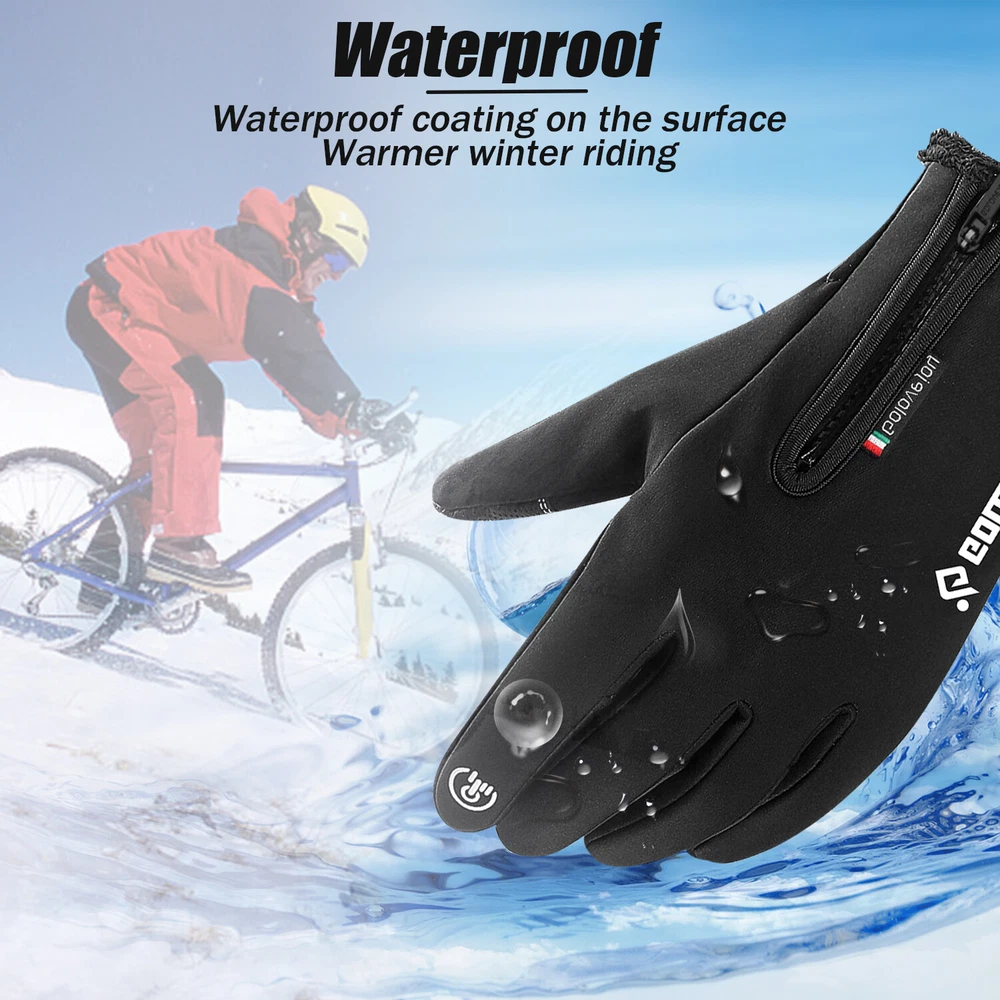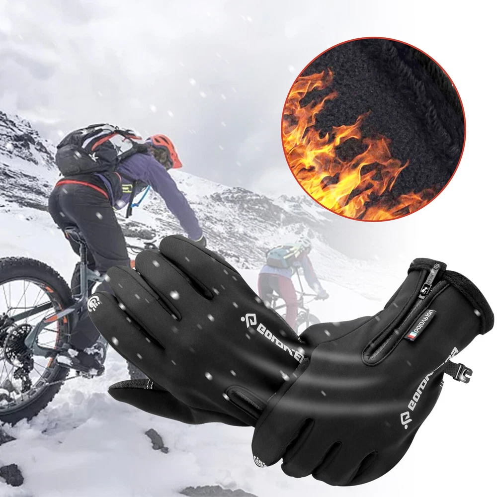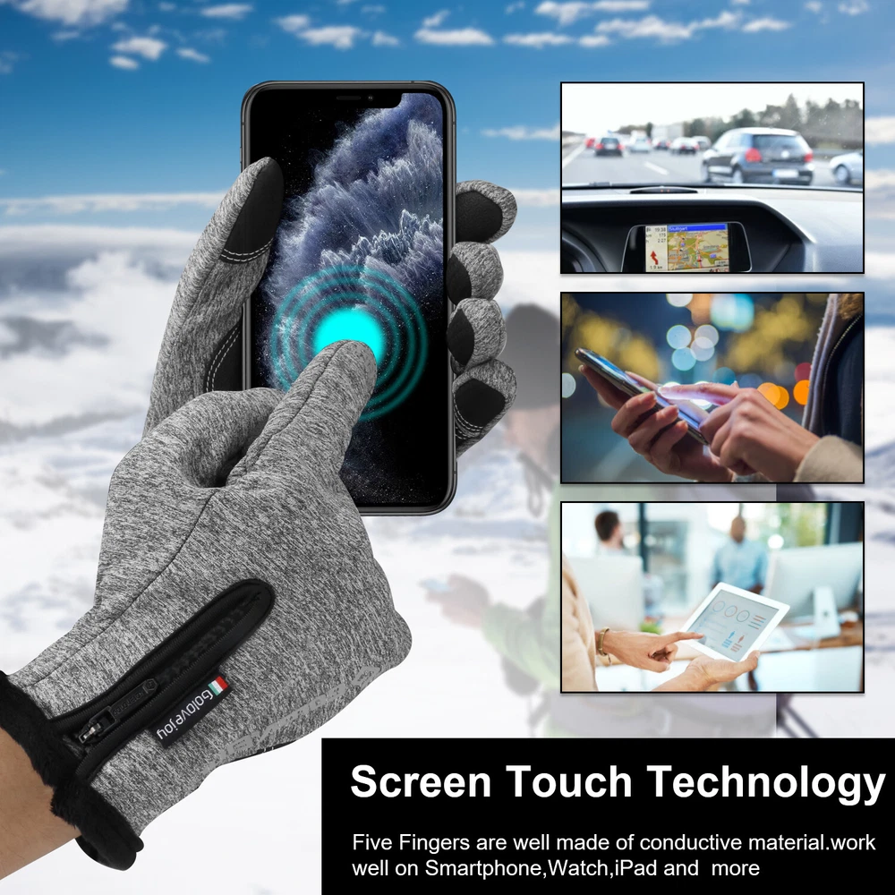 -10℃ Waterproof Winter Warm Ski Gloves Thermal Touch Screen Motorcycle Snowboard Decription: Our products are made of woolen windproof fabric for added warmth and comfort. Adjustable zipper for different size hands and easily take off gloves.Touch the screen with full-fingered PU gloves, more sensitive and no harm.s. This pair of gloves is worth having,In this winter. Size: Size S M L XL XXL Palm Width 2.76-2.95in 2.95-3.15in 3.15-3.54in 3.54-3.94in 3.94-4.72in Palm Circumference 6.69-7.08in 7.08-7.48in 7.48-7.87in 8.26-8.66in 8.66-9.49in Feature: [ Keep Hands Warm & Comfortable] Combined with the warm and soft polar fleece lining and stretchy cuff, these winter gloves not only lock the temperature on your hands and reduce the heat loss, but also absorb moisture and sweat. Say goodbye to the clamminess, your hands will always warm and dry while wearing these warm gloves. [Excellent Waterproof & Windproof ] with high-density waterproof membrane on the surface layer, these cold weather gloves for men can keep your hands dry and warm against melting snow or drizzle. No longer to endure the cold wind or wet to take the heat away in your winter daily activities. [Sensitive Touchscreen & Safety Anti-Slip Silicone] These women running gloves adopted with high-sensitivity conductive material on the thumb and index, help to control all your smart devices conveniently with gloves on. Coated with high-quality silicone on palms and fingers for enhanced friction and grip. Contribute to a higher efficient on daily work. [Flexible & Lightweight ] Unique 3D tailoring and high-stretchy Lycra greatly improve the flexibility and comfort of wearing. These snow driving gloves will fit your hands perfectly like your second skin. So that flexible enough to enhance movement for all the activities. Lightweight and sleek design allow you to take them easily wherever you go. Please Note:Water Resistance (Not Waterproof),gloves should not be immersed in water for long periods of time. Package Included: 1 pair Waterproof Windproof Sensitive five-finger touch screen gloves. Contact us: If you have any questions, please feel free to contact us to resolve the issue before opening a case or Negative, Thanks a lot!