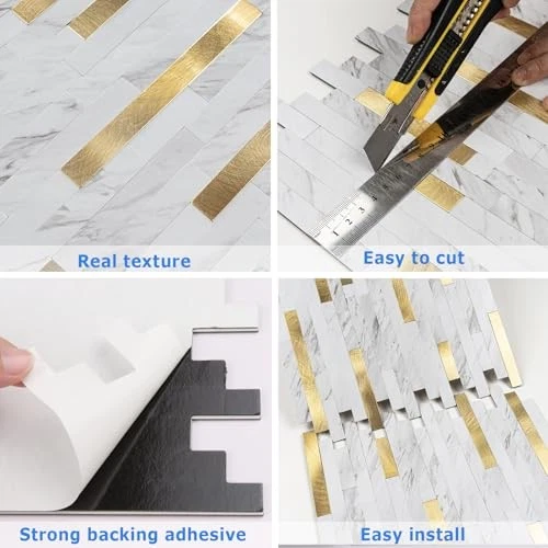 Return Policy Fast Delivery Trusted seller 10 Sheets PVC Peel and Stick Backsplash Tile for Kitchen/Bathroom/Laundry Room/Fireplace/RV Product Description SIZE: 10 sheets self adhesive PVC tiles, 12.7"x10.5"x0.12" each, cover about 8.4 square feet. Please consider cutting loss 3-5% in every DIY project. REAL TEXTURED: The design was inspired by nature, made of PVC composite laminate, have natural appearance and realistic texture. HIGH QUALITY: Specially designed for DIY project, resistant to water and heat, anti-scratch, color fadeless. Durable PVC Material, mixed with strong backing adhesive, will permanently decorate your space. EASY DIY: Peel and stick installation, just interlock one by one. No extra glue, no grouting, without mess. Easy to cut with sharp utility knife or heavy duty scissors, save you time and money on contractor. WIDELY USE – Perfectly decorated in Kitchen island walls, bedroom walls, bathroom backsplash, laundry room, RV etc. Shipping Returns Payment Shipping Shipping is FREE to all addresses other than APO/PO boxes in the lower 48 states. All our stock ships from US-based warehouses. Shipped via USPS or UPS (depending on location and package weight) Unless stated otherwise, all orders will ship within 24-72 hours of your payment being processed. Check our feedback to see the great reviews of FAST shipping we offer. Returns Seller does not accept returns Payment We currently accept payment via eBay managed payments only. Once payment is cleared, we will dispatch your shipment within 1-3 business days. Please refer to the "Shipping" tab for more information regarding shipping speed to your destination.