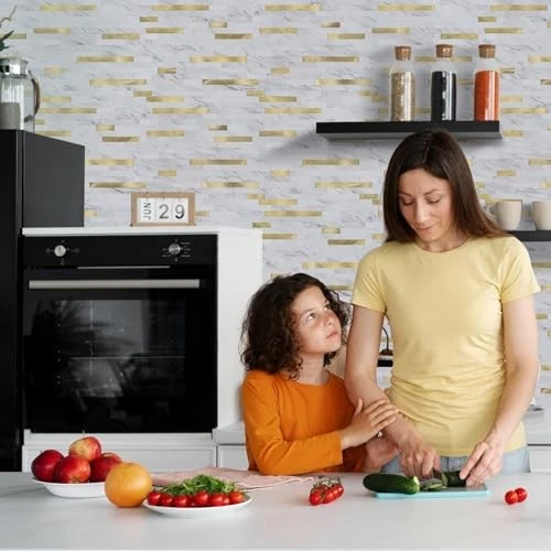 $ 32.023x6 Peel and Stick Backsplash Tile - 100 Calacatta Gold PVC Wall Tiles