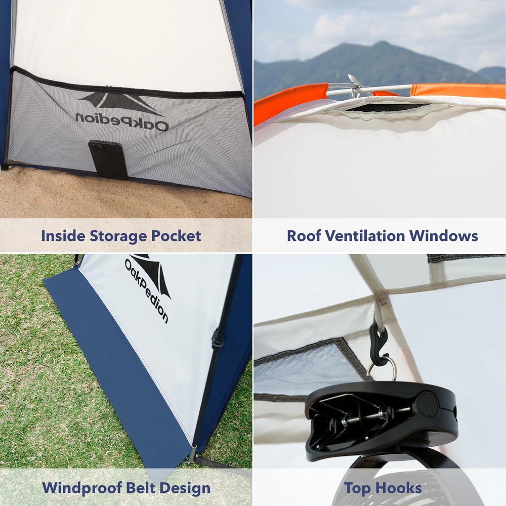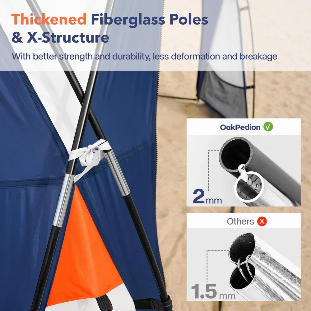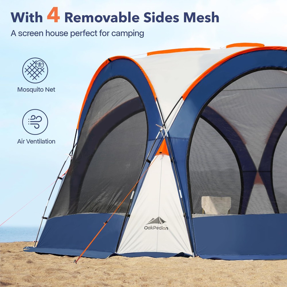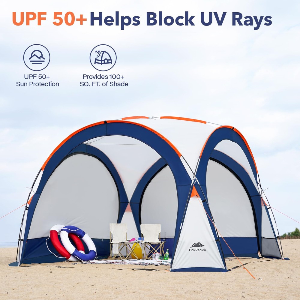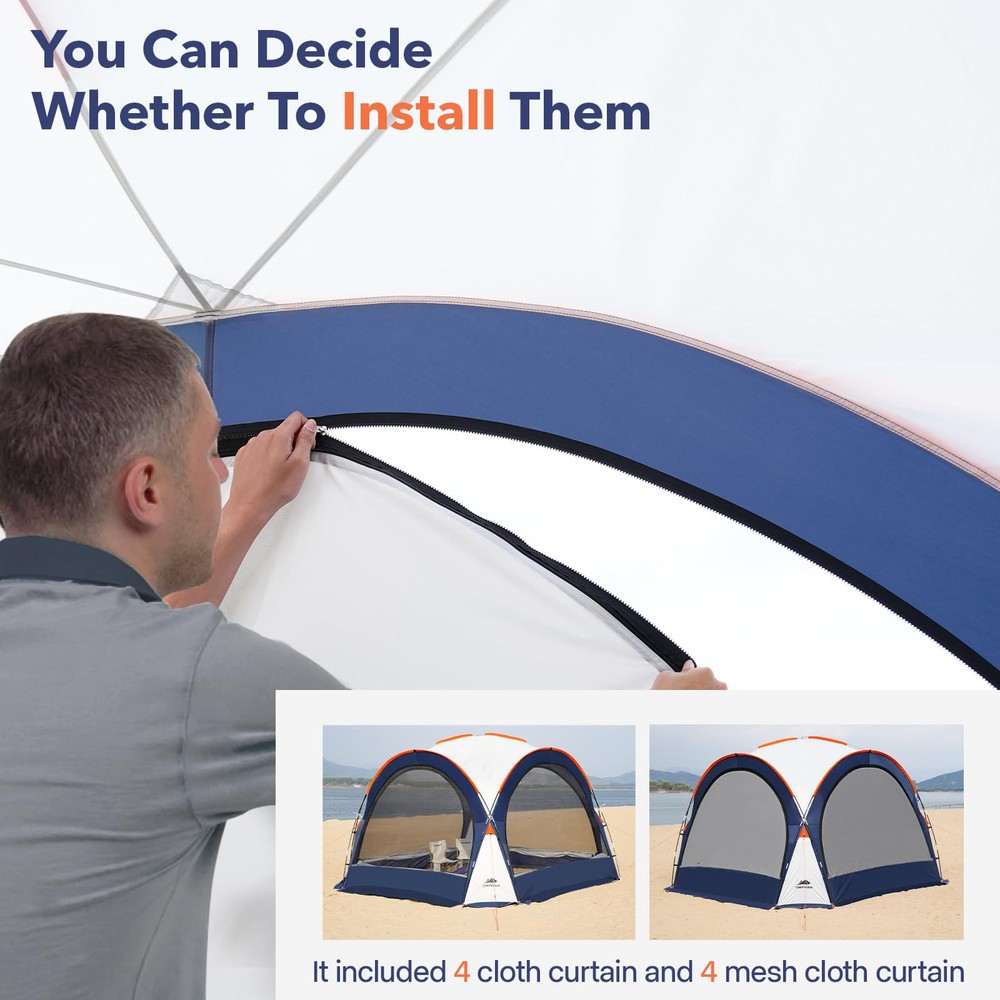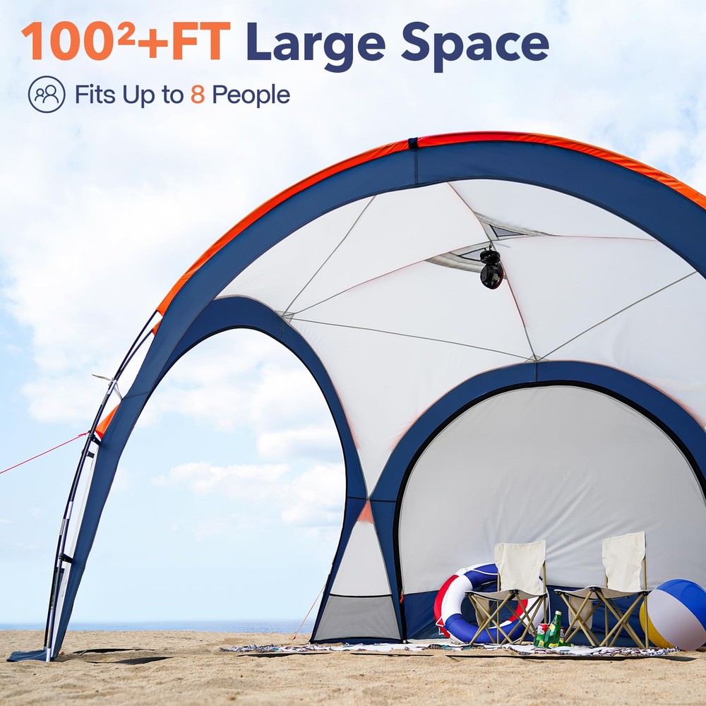 【Luxuriously Spacious】The large beach tent measures 10x10x7.5 feet (LxWxH), 100+ feet range of activity, greatly increasing its shade area and providing spacious shelter for 6-8 people, perfect for families and friends to enjoy the outdoors. 【Superior Protection】The beach shade canopy is made of premium 185T polyester fabric with UPF50+ sun protection that blocks 98% of harmful ultraviolet rays while insulating heat. A 1000mm hydrostatic head fly and fully taped seams prevent leaks and protect your family all day on sunny or rainy days. 【Sturdy Structure】The camping sun shelter is constructed from 8 strong, reinforced fibreglass poles with an X-shaped structure for greater stability, even in high winds. Roof vents keep the beach shelter stable by circulating air. 【Multifunctional Design】The canopy tnet is designed with hanging cloth around it, you can decide whether to install wall cloth or not. The hybrid design offers many ways in which you can enjoy the outdoors, such as beach, garden, camping, playground, backyard, lawn and so on. 【Portable & Easy Setup】The camping tent can be easily carried in the handbag of the trunk. The family beach tent is equipped with a simple structure, just put the stability poles into the ceiling and connect the bottom can be used. Come and enjoy the installation with your family and friends! 【Worry-Free Guarantee】promises a 100% risk-free satisfaction guarantee, if you aren't satisfied with it we'll be happy to refund. If you have any questions, please contact us.